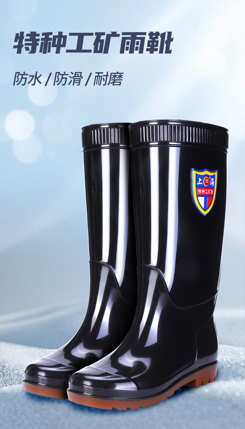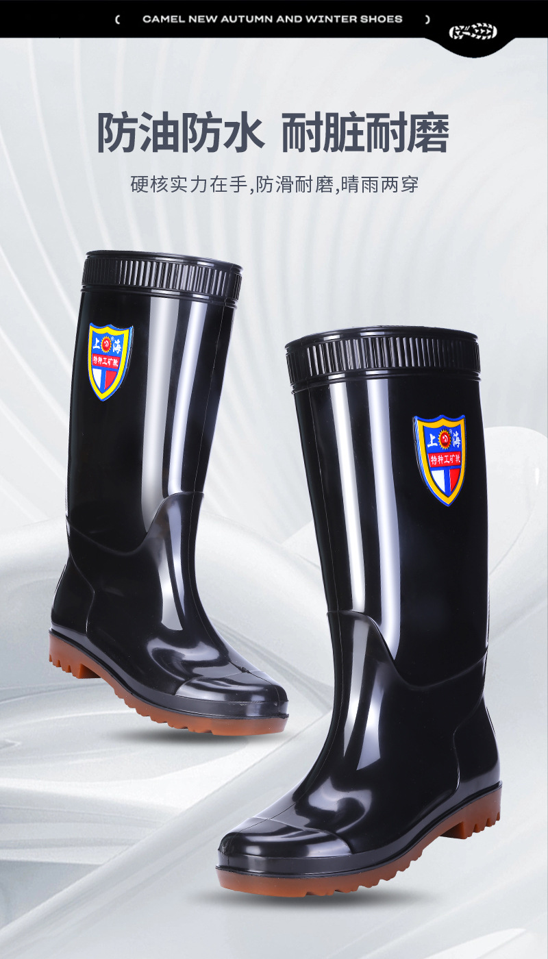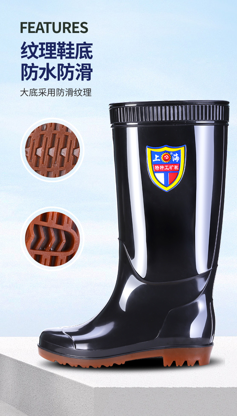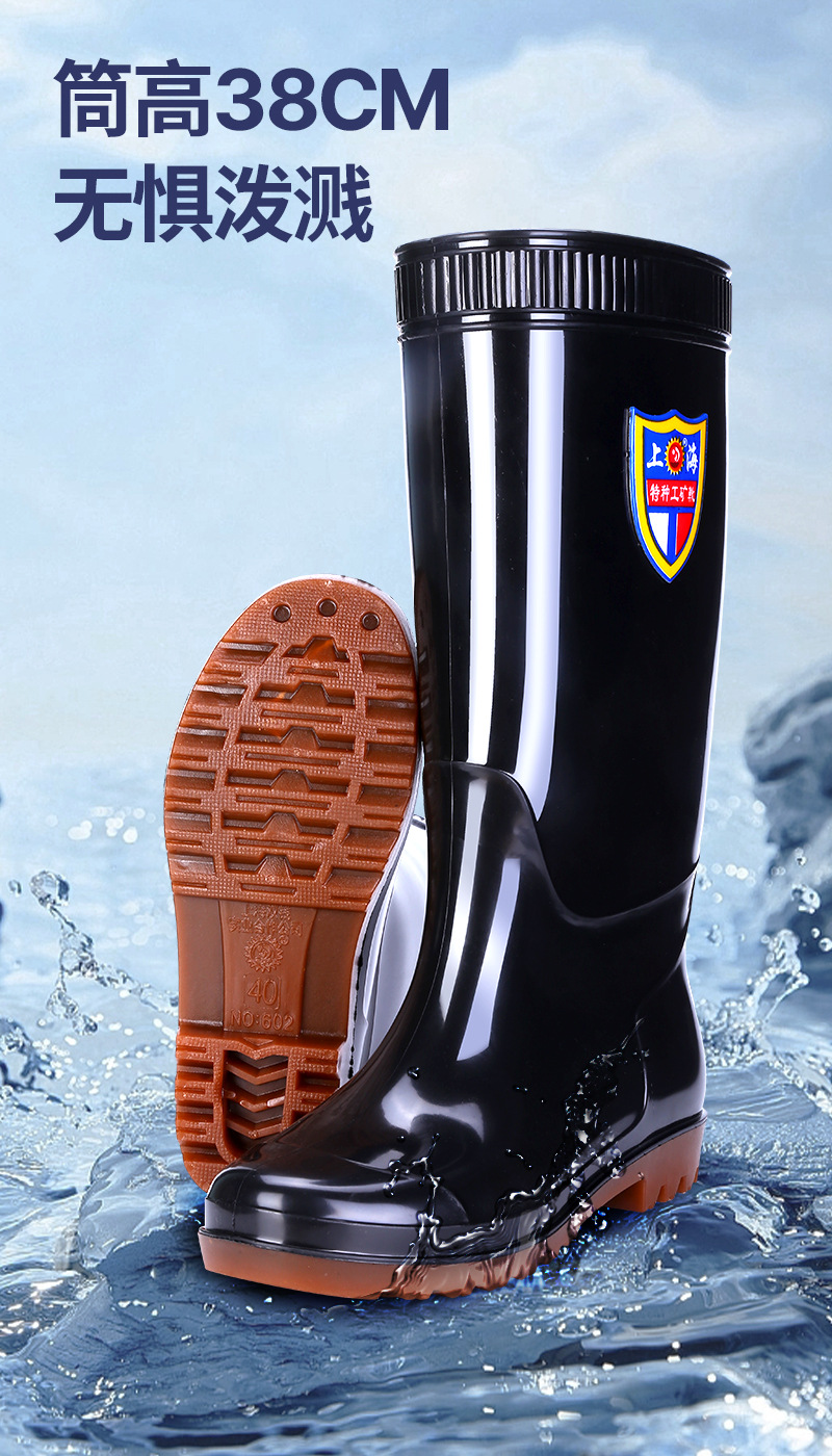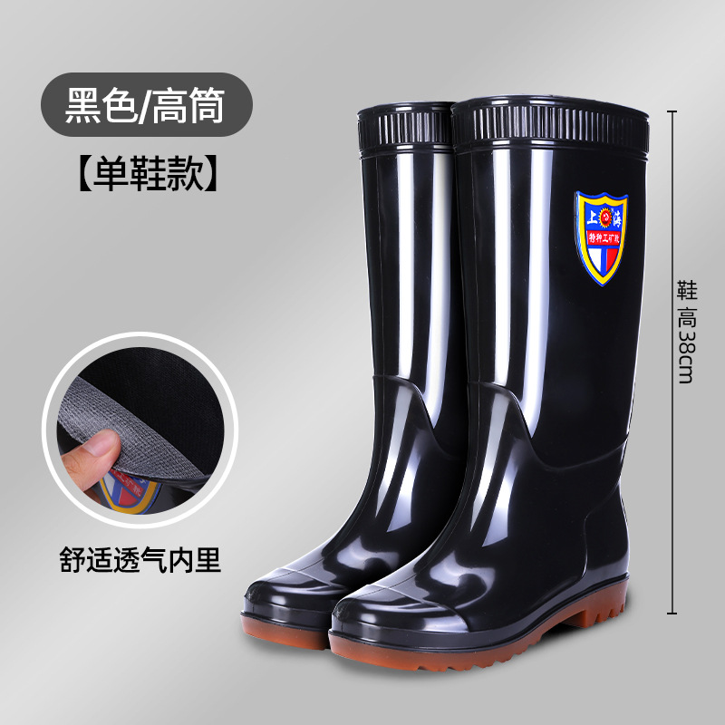 상하이 Shuangqian Sjiemei 레인 슈즈 남성용 하이 배럴 황소 힘줄 바닥 물 신발 롱 배럴 기모 미끄럼 방지 내마모성 노동 보호 건설 현장