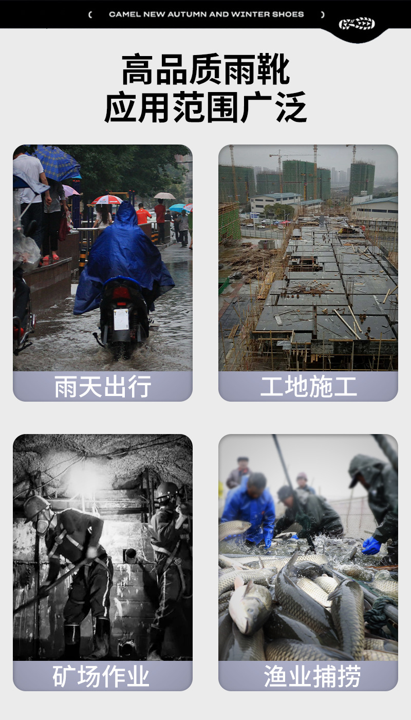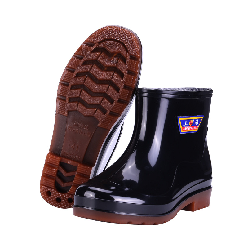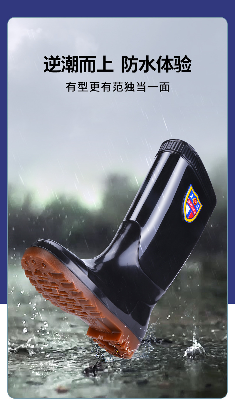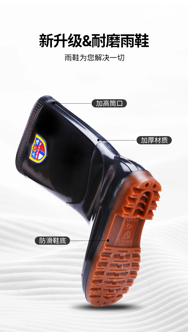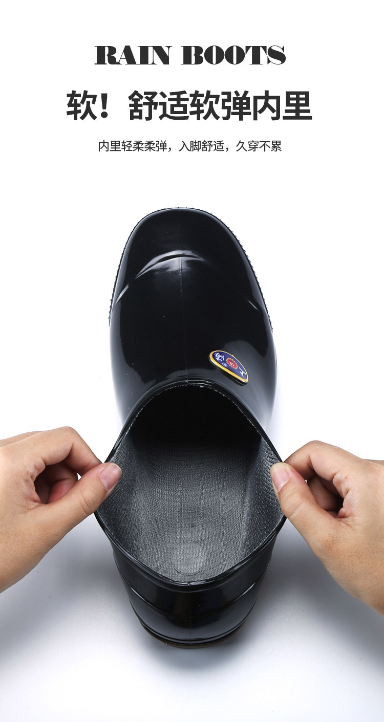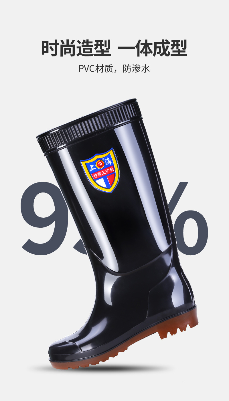 상하이 Shuangqian Sjiemei 레인 슈즈 남성용 하이 배럴 황소 힘줄 바닥 물 신발 롱 배럴 기모 미끄럼 방지 내마모성 노동 보호 건설 현장