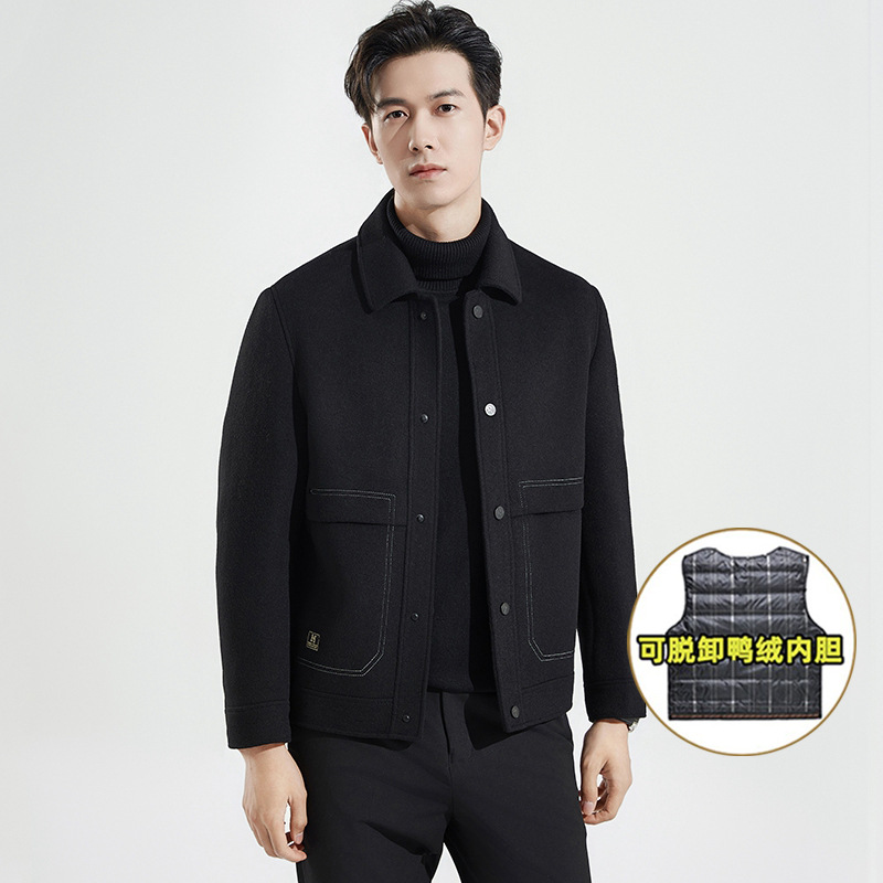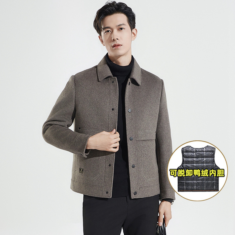 [라이브 폭발] 양모 양면 티트 재킷 남자 이동식 오리 다운 라이너 두꺼운 캐주얼 작업복 재킷 쇼트스토어 가기