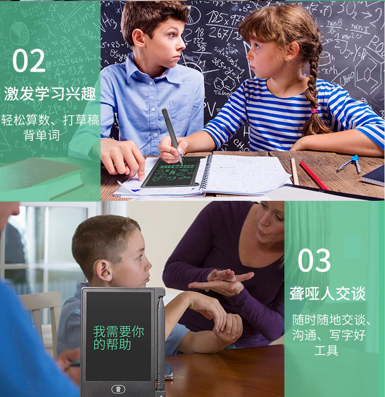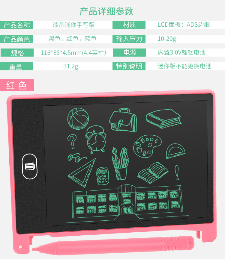 LCD LCD 4.4 인치 미니 필기 보드 어린이 소형 드로잉 보드 LCD 필기 보드 홈 오피스 학생