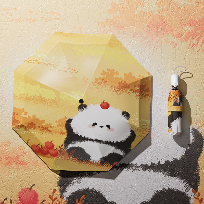 만화 어린이 우산 팬더 유화 수동 접는 우산 검은 접착제 태양 보호 및 비 이중 사용 양산 우산 고정 인쇄 로고
