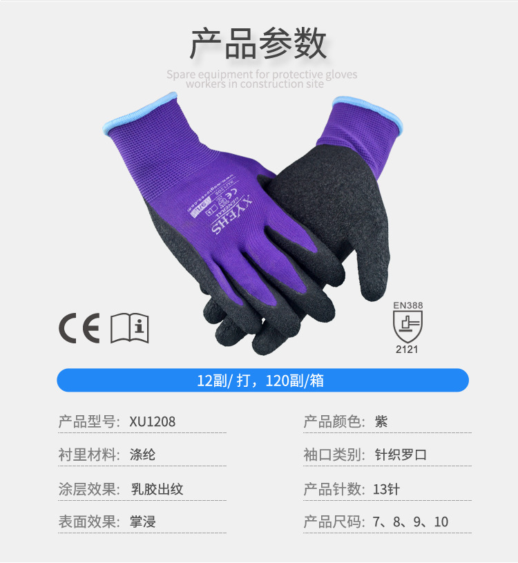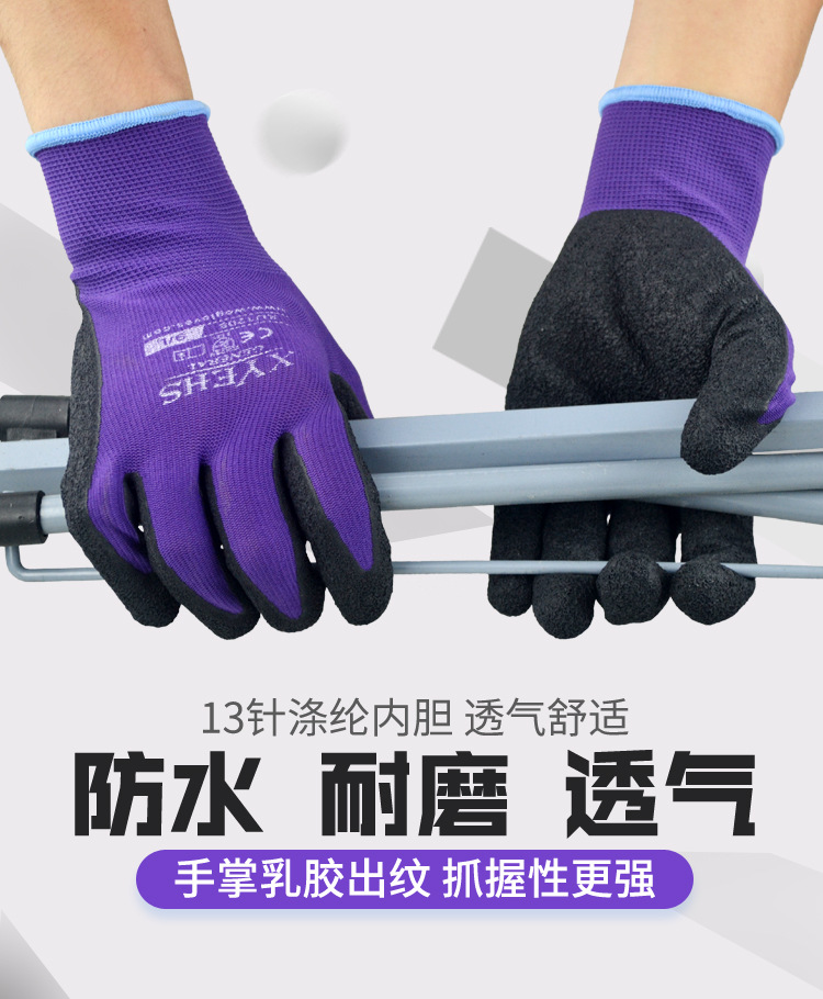 XYEHS XU1208 주름 라텍스 담그기 원예 장갑 꽃 심기 방수 내마모성 미끄럼 방지 통기성 취급