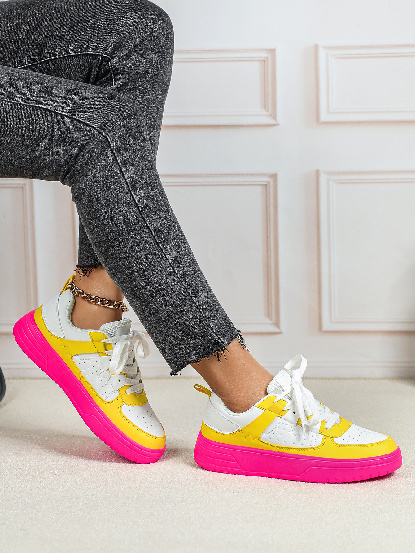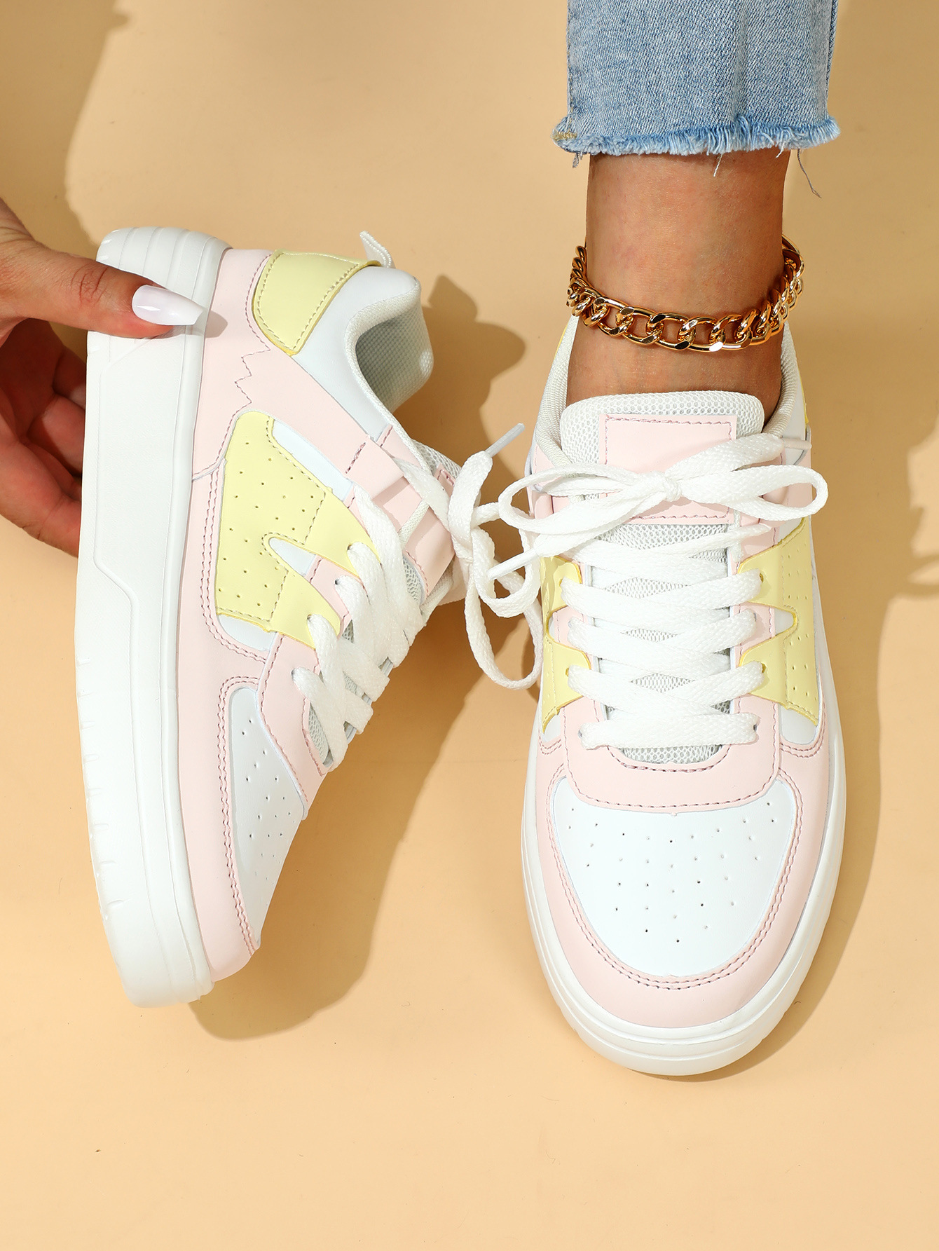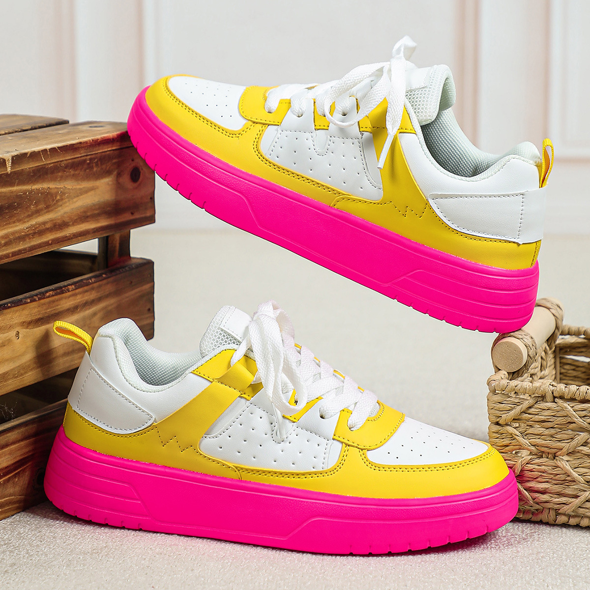 한국 스타일 트렌디 한 연인의 플랫폼 신발 부드러운 밑창 편안한 스포츠 신발 레이스 업 패션 야외 캐주얼 여성 신발