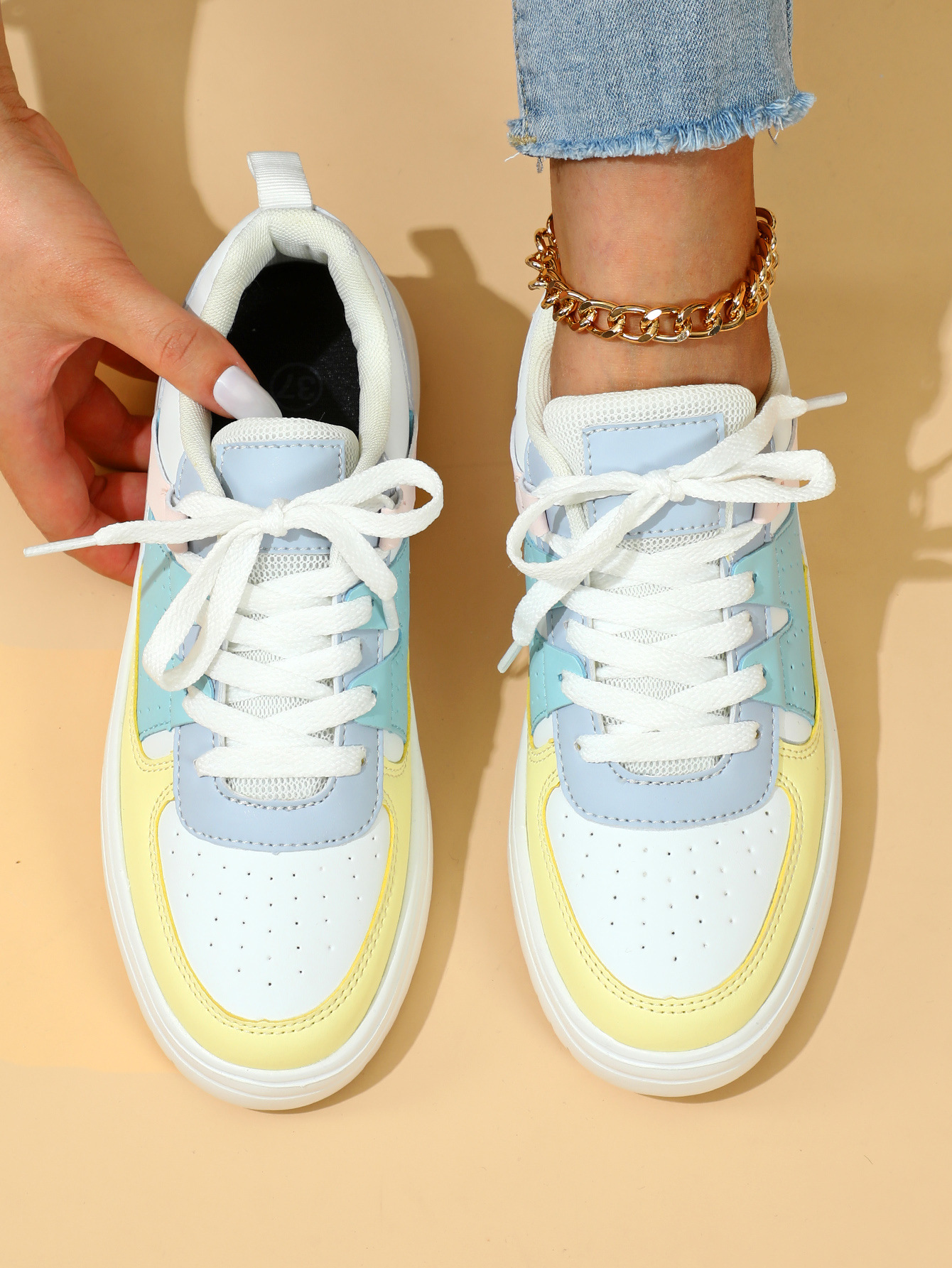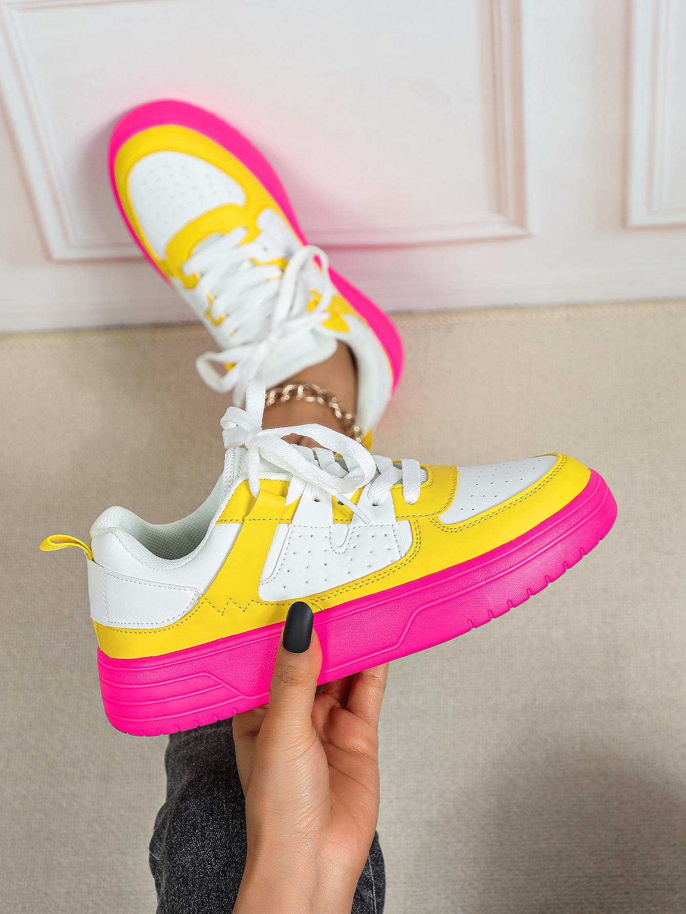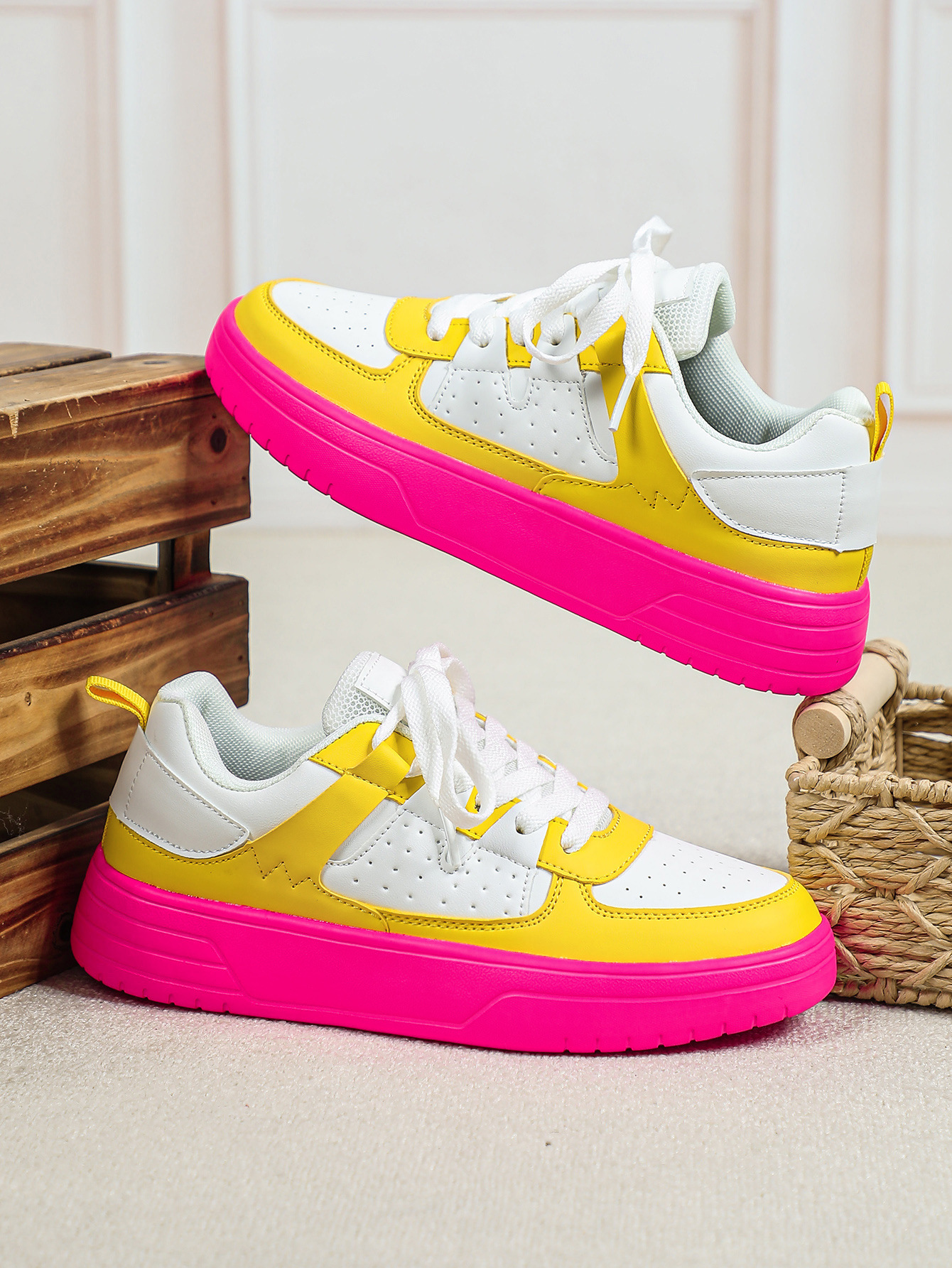한국 스타일 트렌디 한 연인의 플랫폼 신발 부드러운 밑창 편안한 스포츠 신발 레이스 업 패션 야외 캐주얼 여성 신발