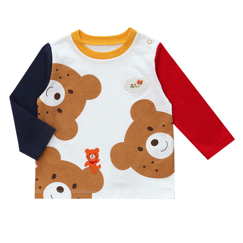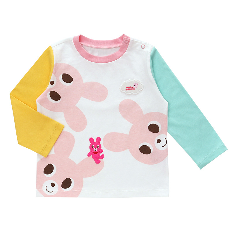领口撞色弹力螺纹包边+袖子撞色贴布装饰