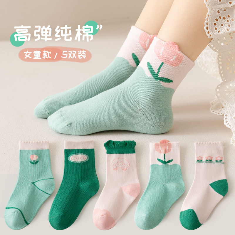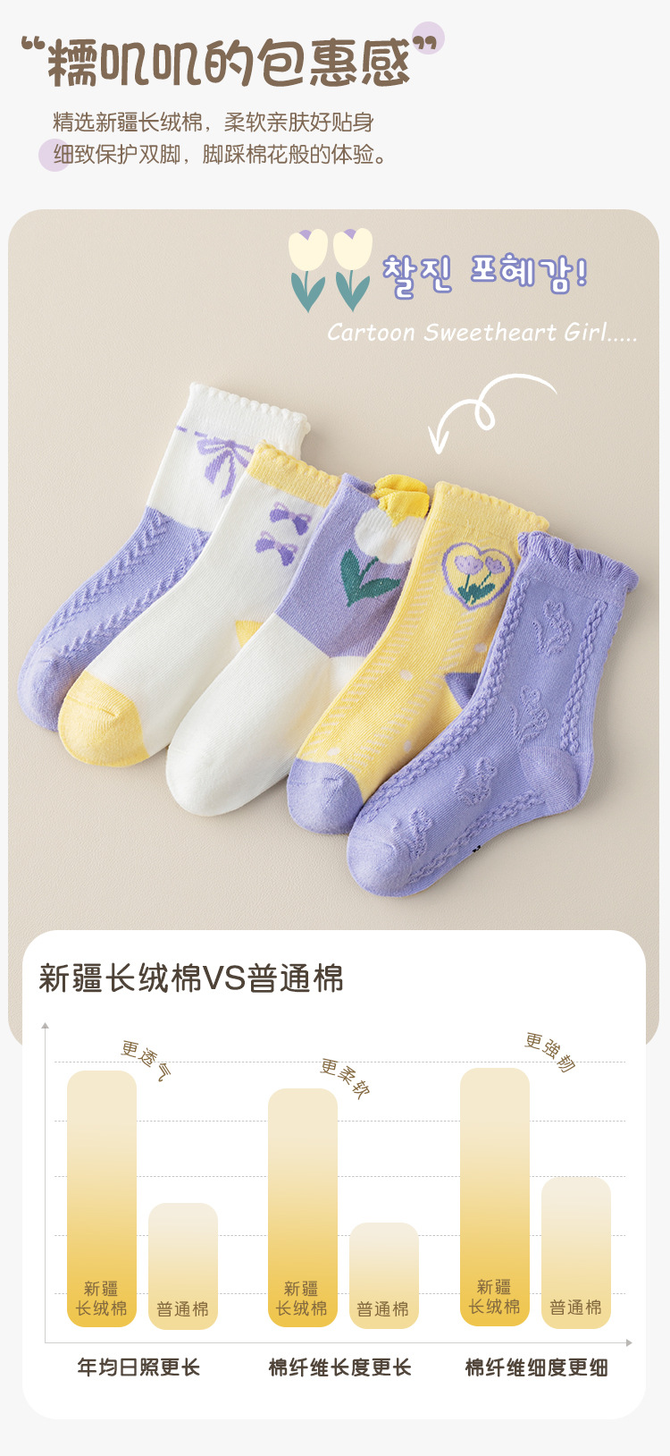 어린이 양말 보라색 꽃 활 소녀 양말 공주 아기 양말 소녀 봄 중반 송아지 양말 빗질면