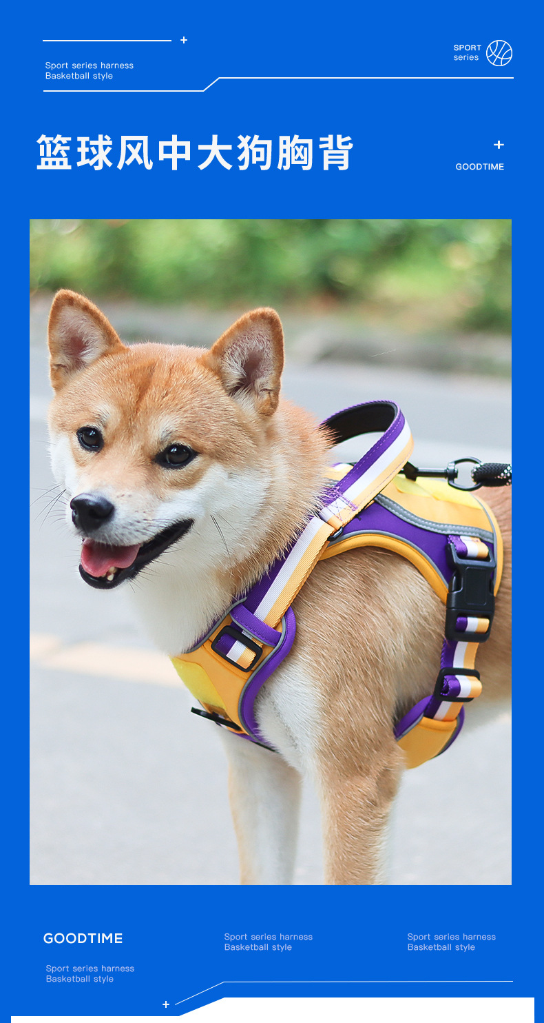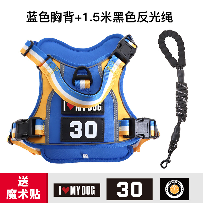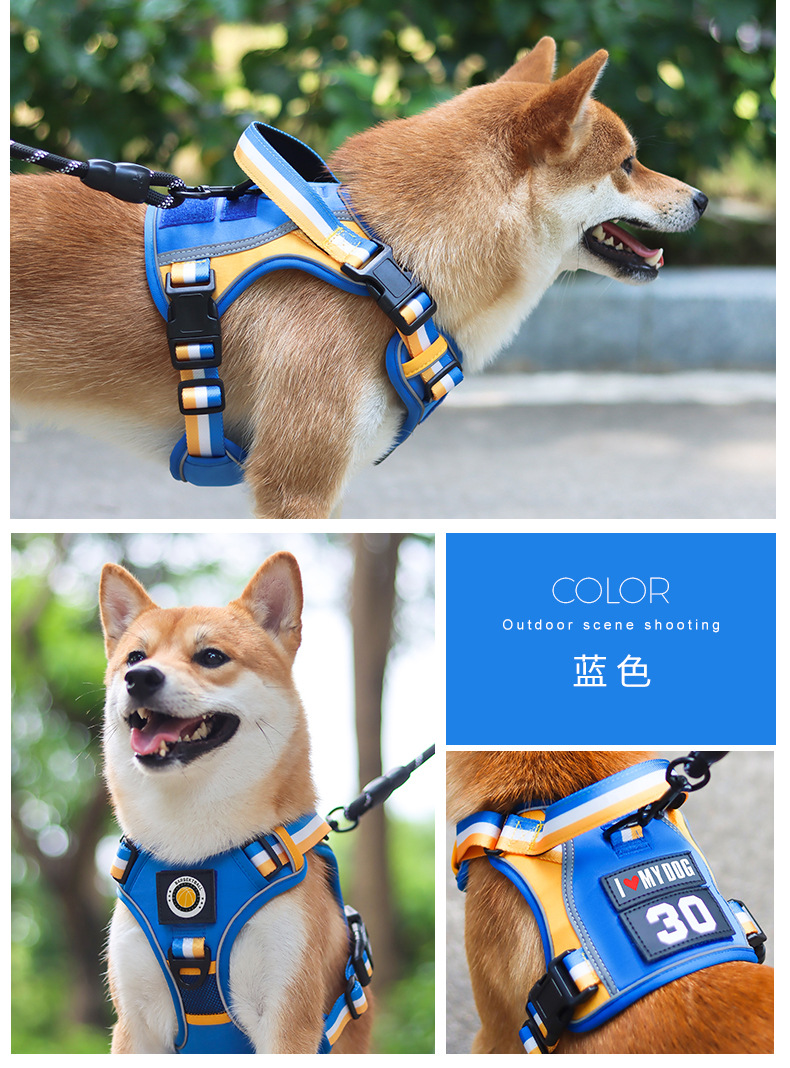 국경 간 개 견인 로프 폭발 방지 펀치 핸들 가슴 뒤 대형 개 로프 반사 애완 동물 가슴 스트랩 제조 업체스토어 가기