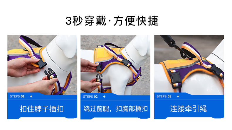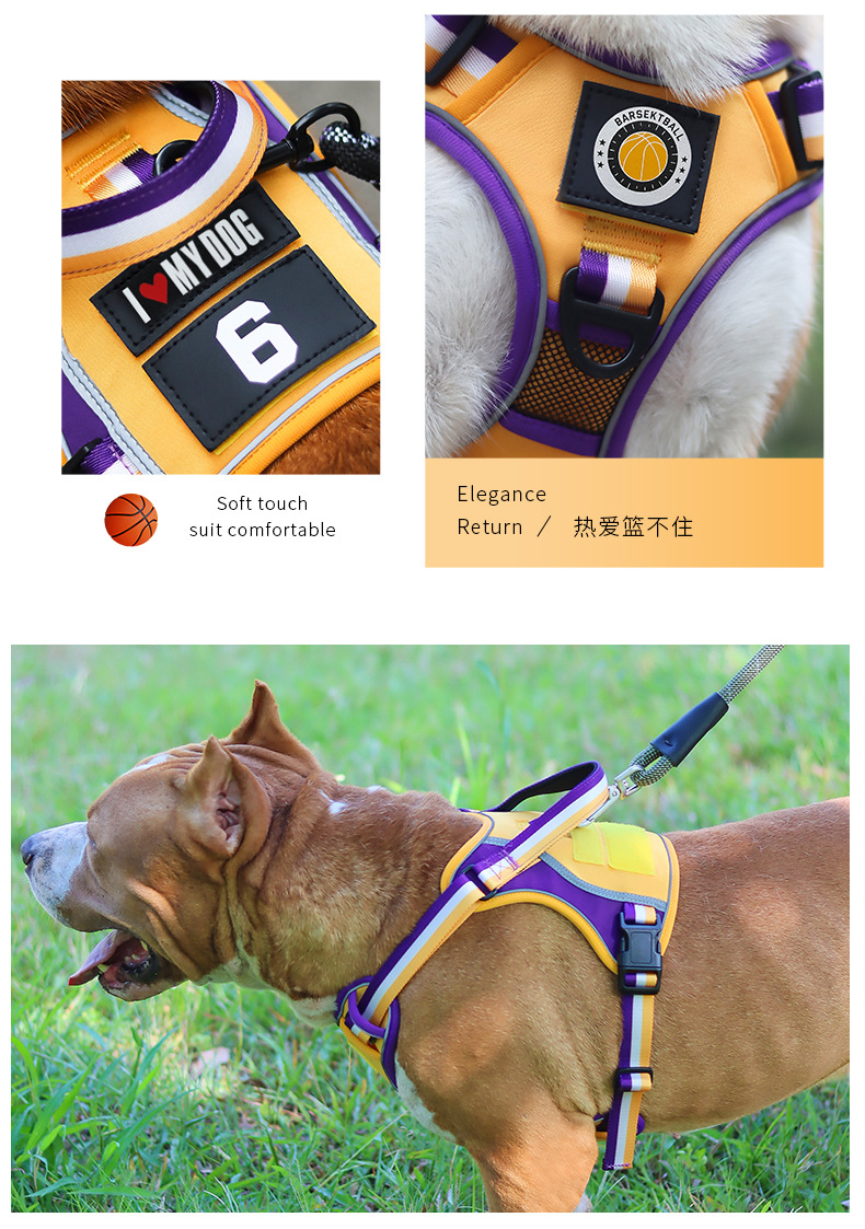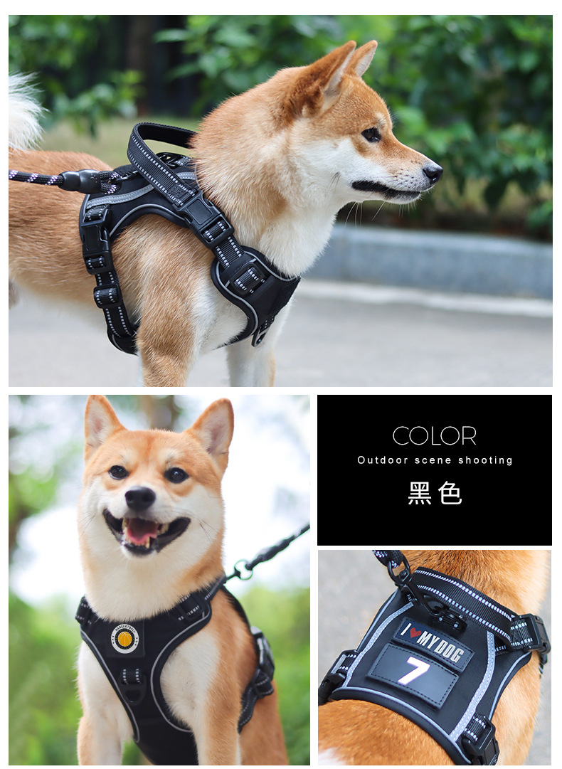 국경 간 개 견인 로프 폭발 방지 펀치 핸들 가슴 뒤 대형 개 로프 반사 애완 동물 가슴 스트랩 제조 업체