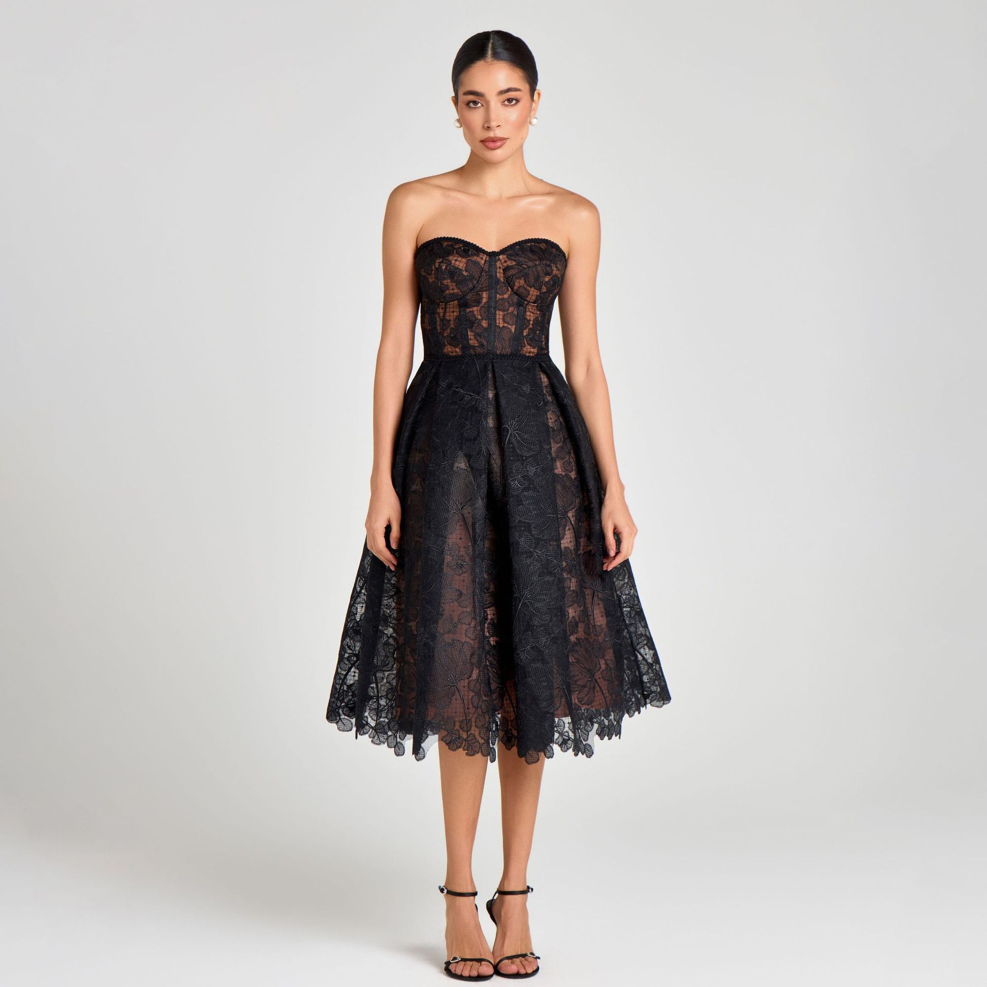 여름 신상 유럽 및 미국 수출용 크로스보더 이브닝 드레스 여성용 타이트한 튜브탑 드레스 섹시한 자수 레이스 드레스스토어 가기