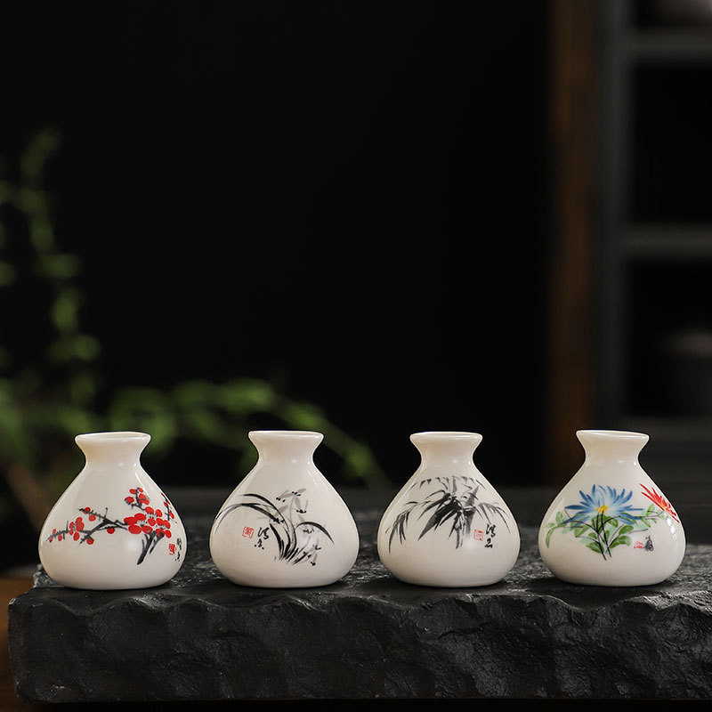 미니 매실 난초 대나무 국화 세라믹 작은 꽃병 포켓 수경 작은 꽃 삽입 풍부한 꽃 사진 프레임 장식 소품 작은 장식품