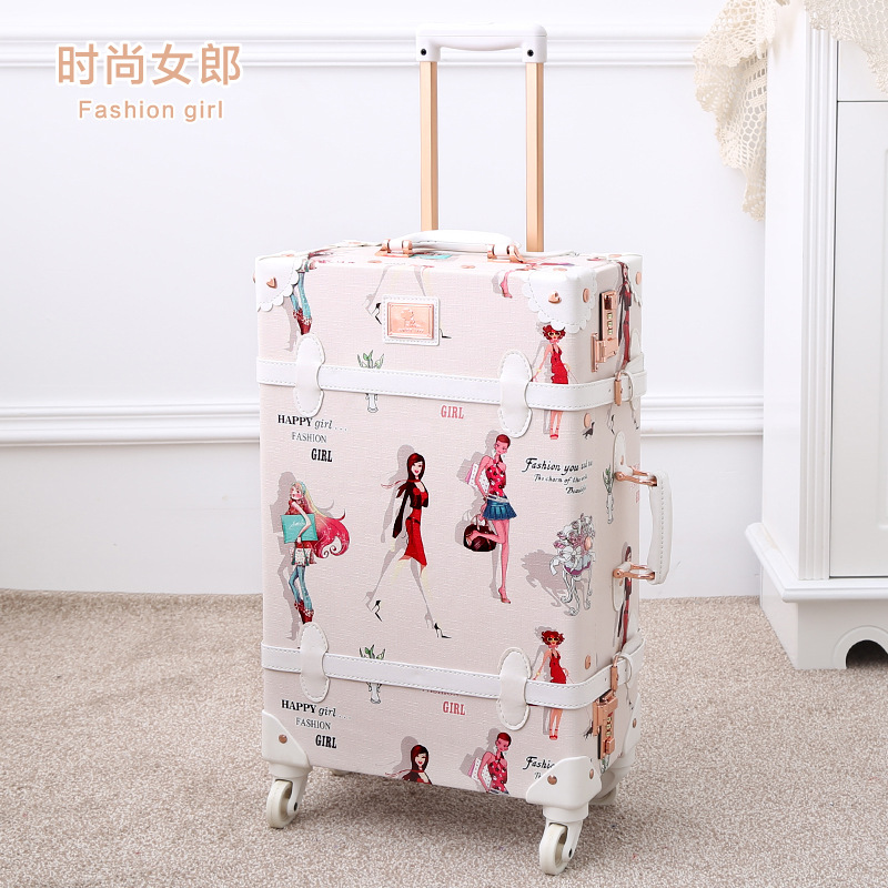 작은 신선한 트롤리 케이스 레트로 여행 가방 여성용 유니버설 휠 수하물 20 인치 트렁크 케이스
