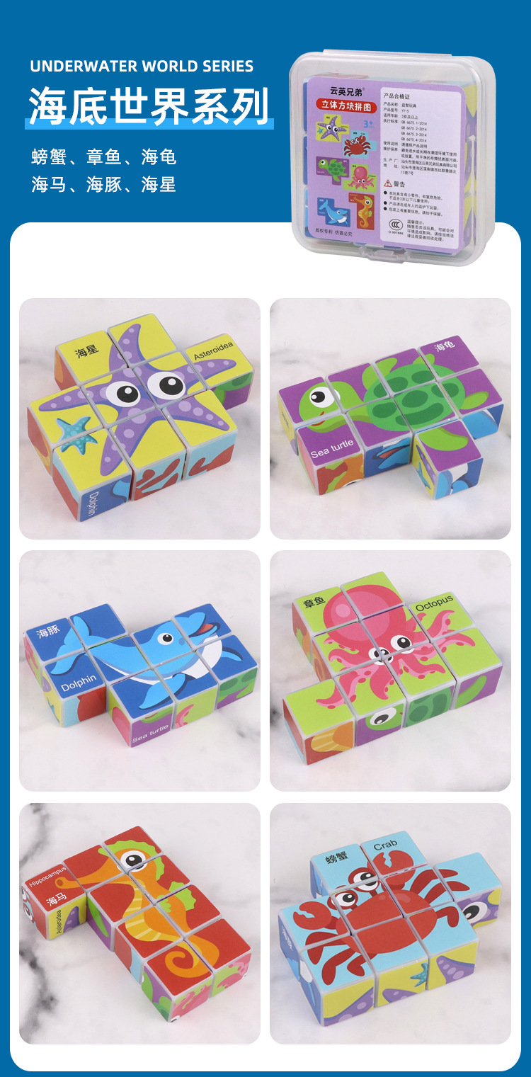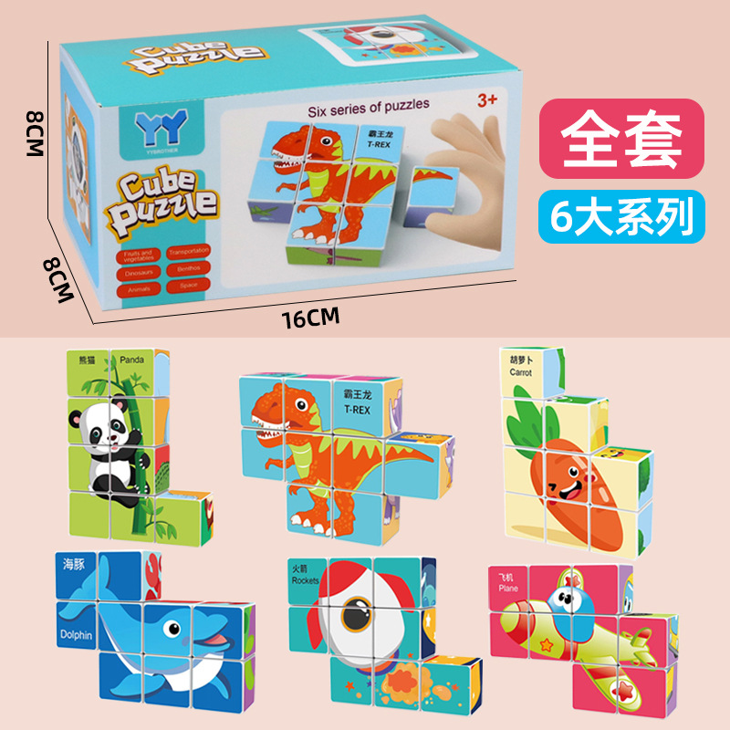 어린이 자기 퍼즐 빌딩 블록 조기 교육 교육 6 면 블록 만화 3 차원 티라노 사우루스 렉스 퍼즐 장난감