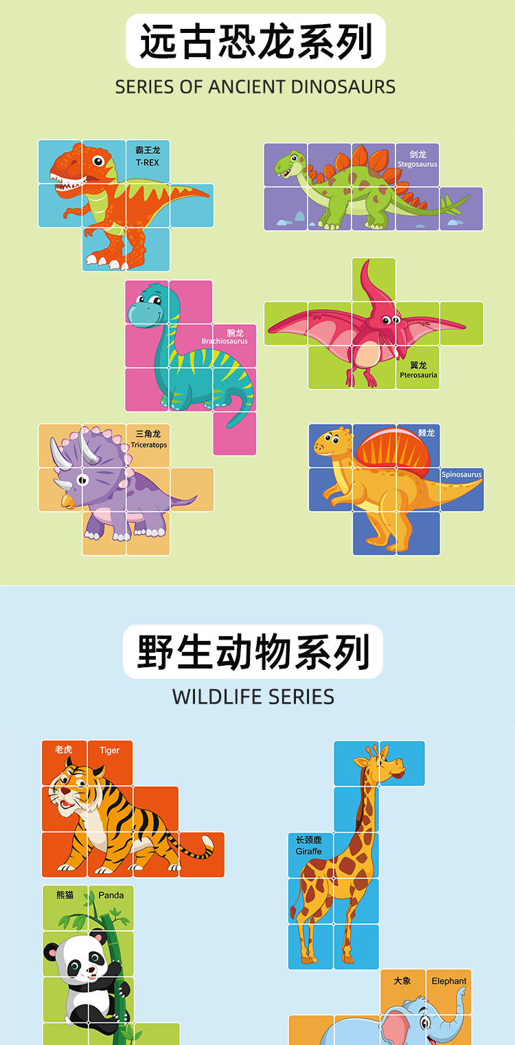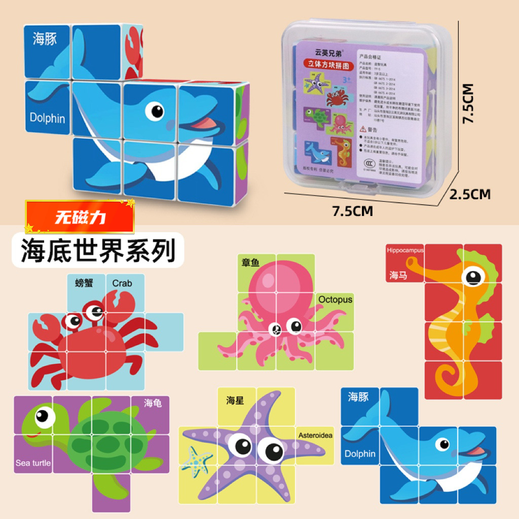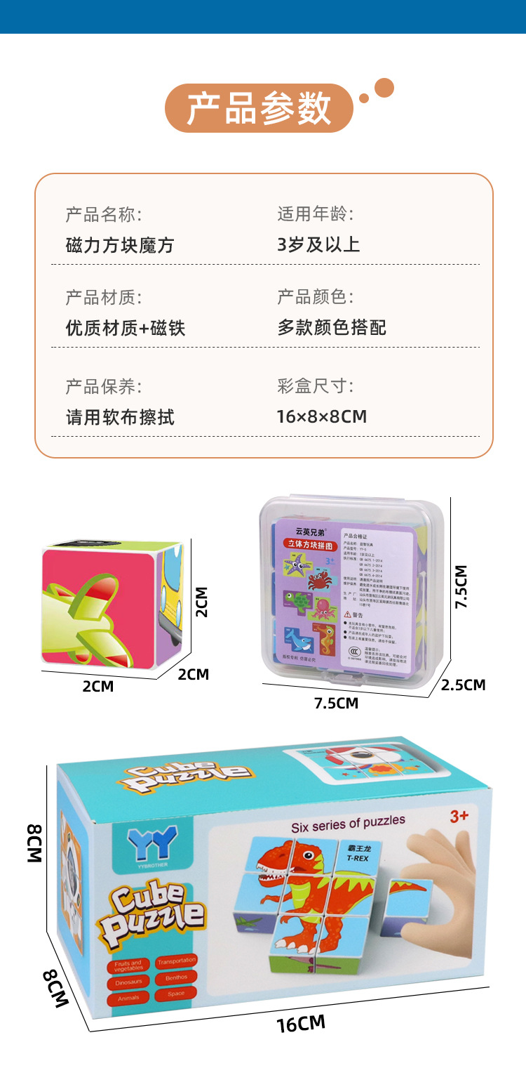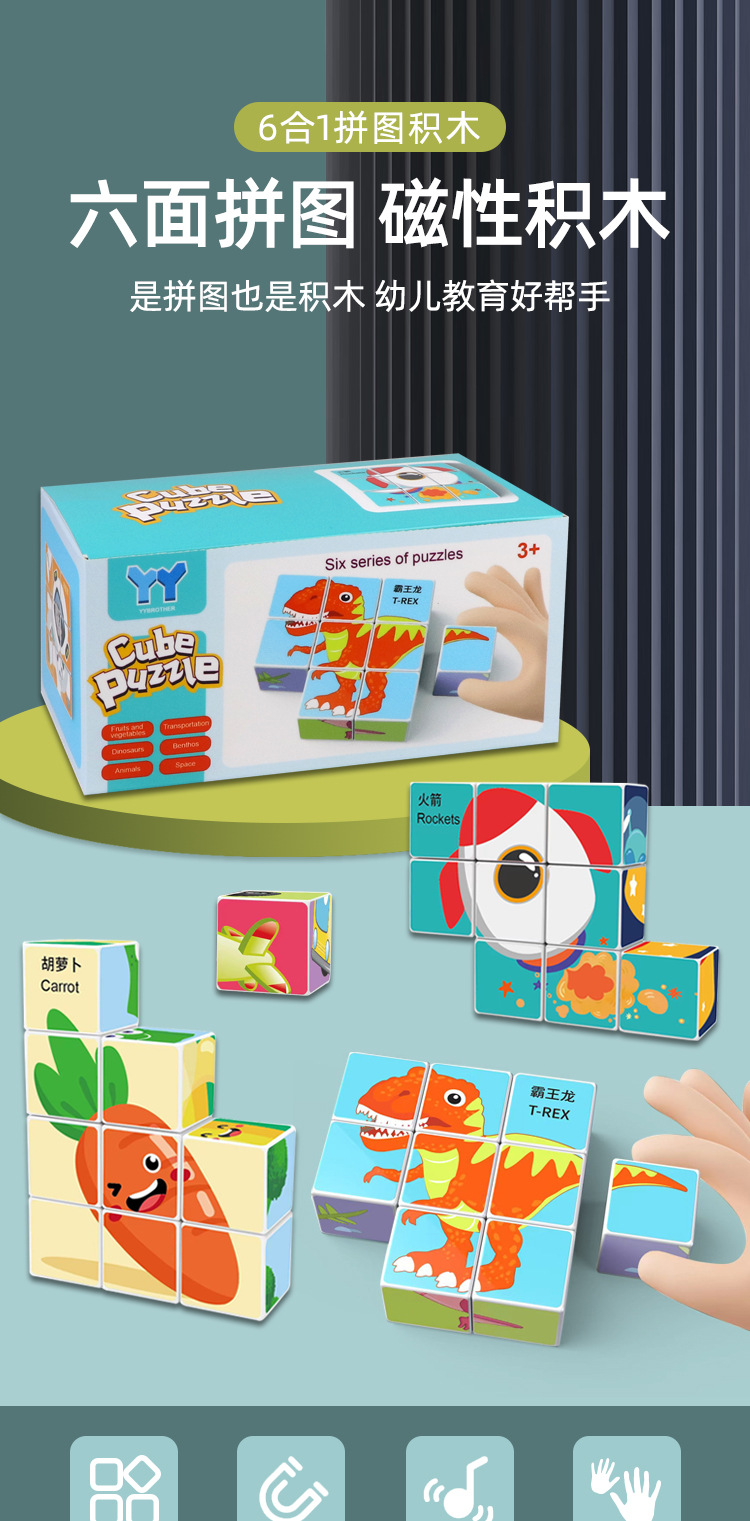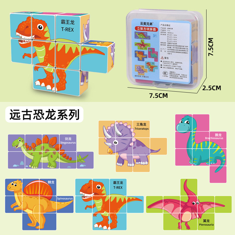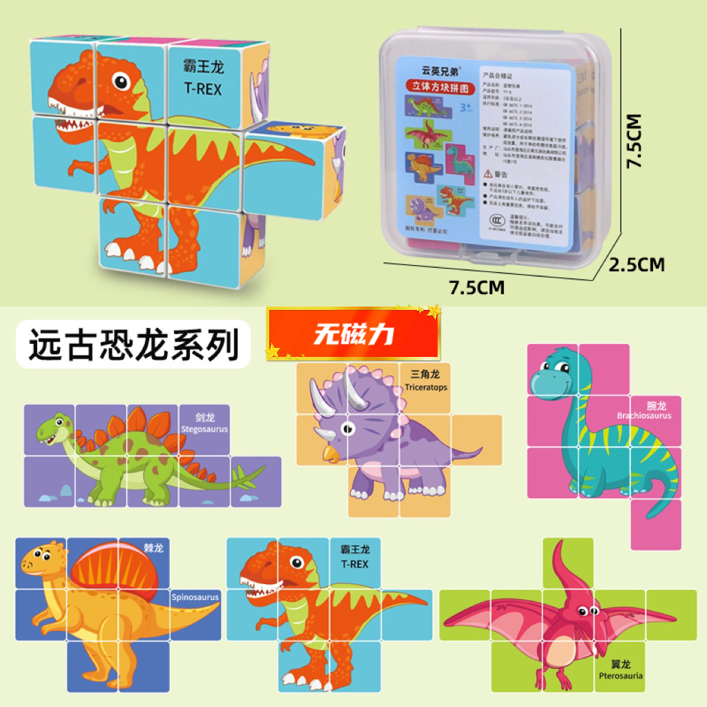어린이 자기 퍼즐 빌딩 블록 조기 교육 교육 6 면 블록 만화 3 차원 티라노 사우루스 렉스 퍼즐 장난감스토어 가기