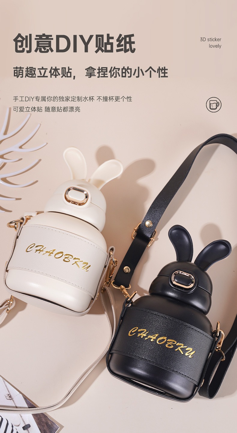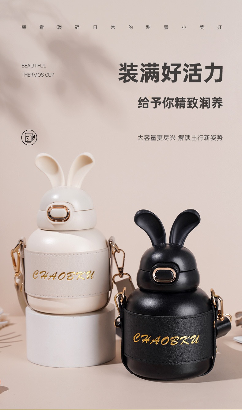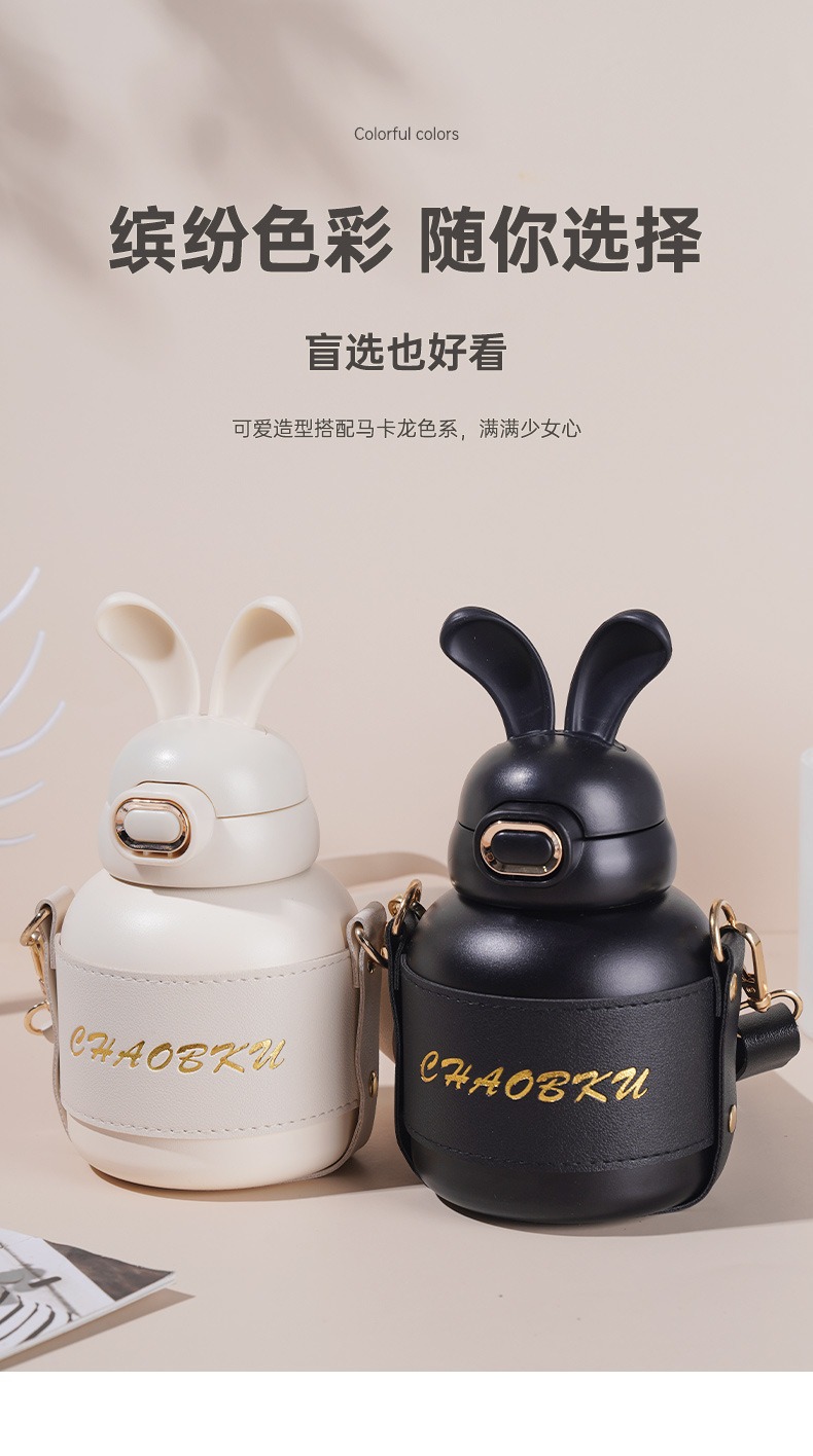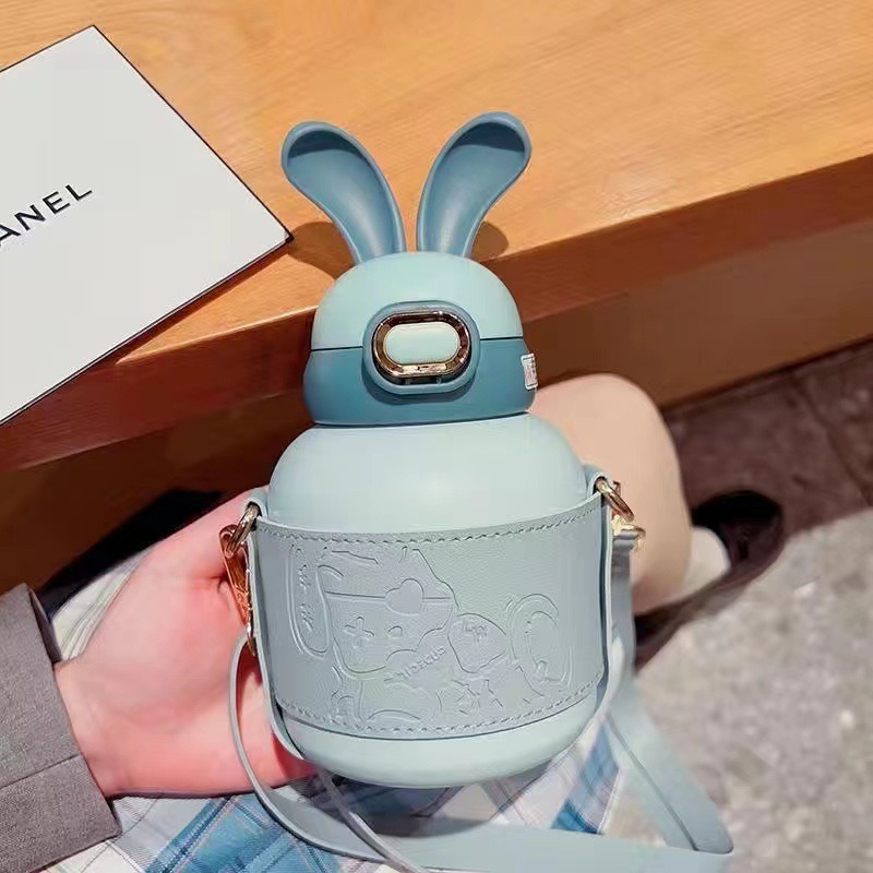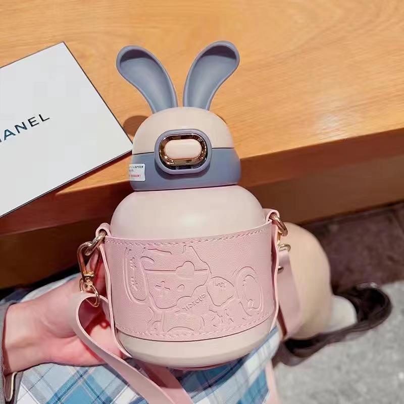 학생 물컵 대용량 어린이 보온병 컵 316 식품 학년 빨대 아이스 불리 컵 귀여운 고가 토끼 귀