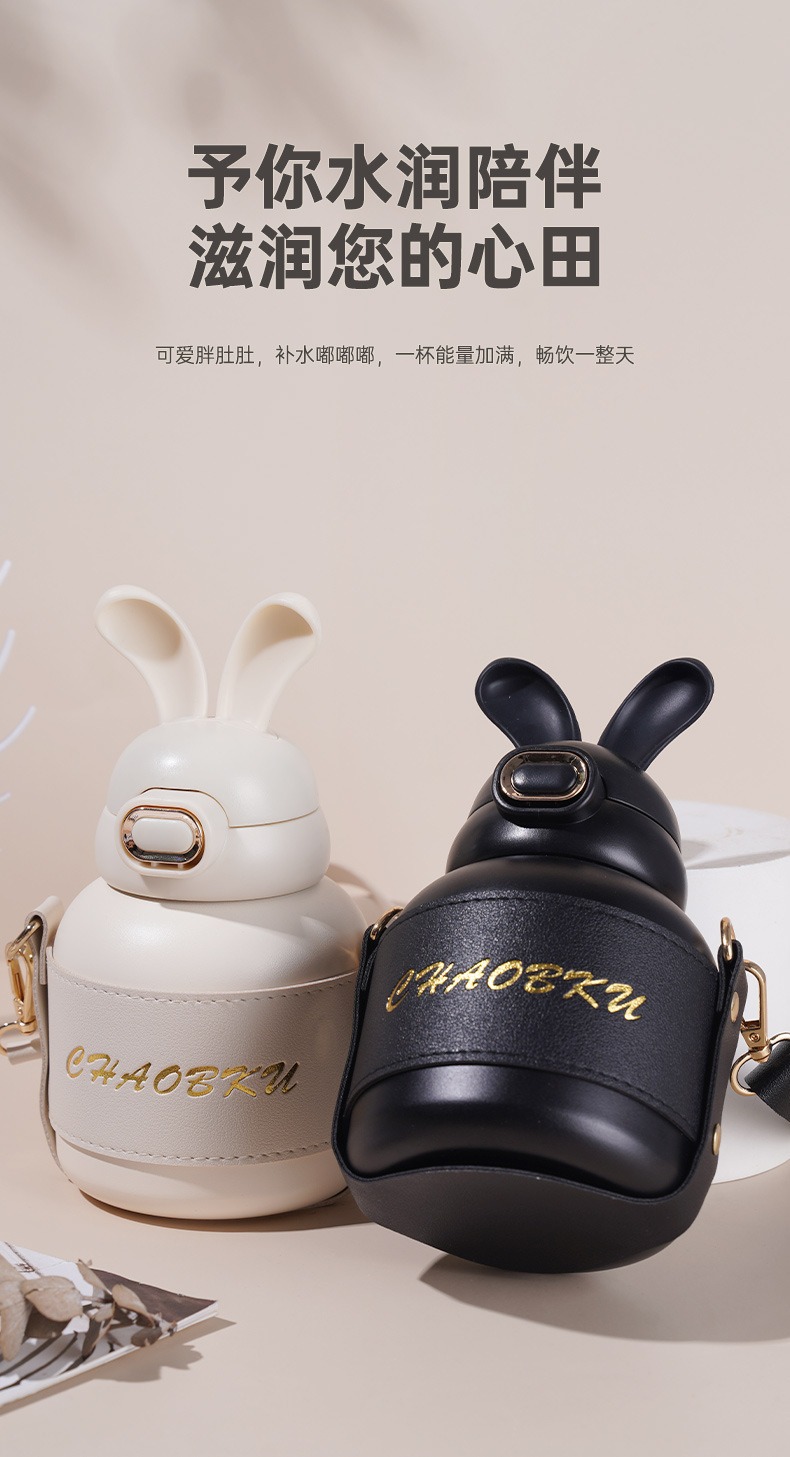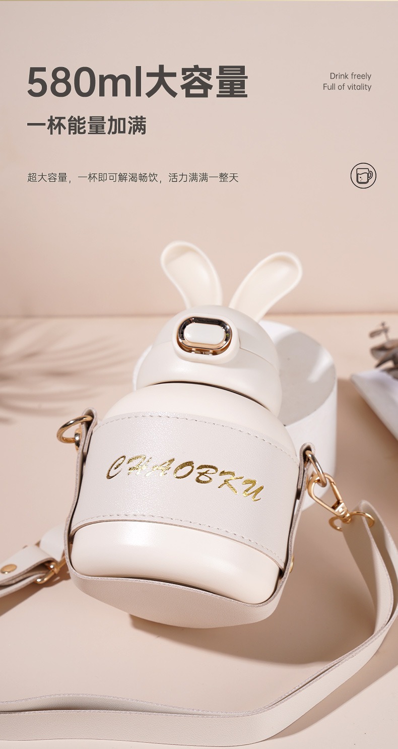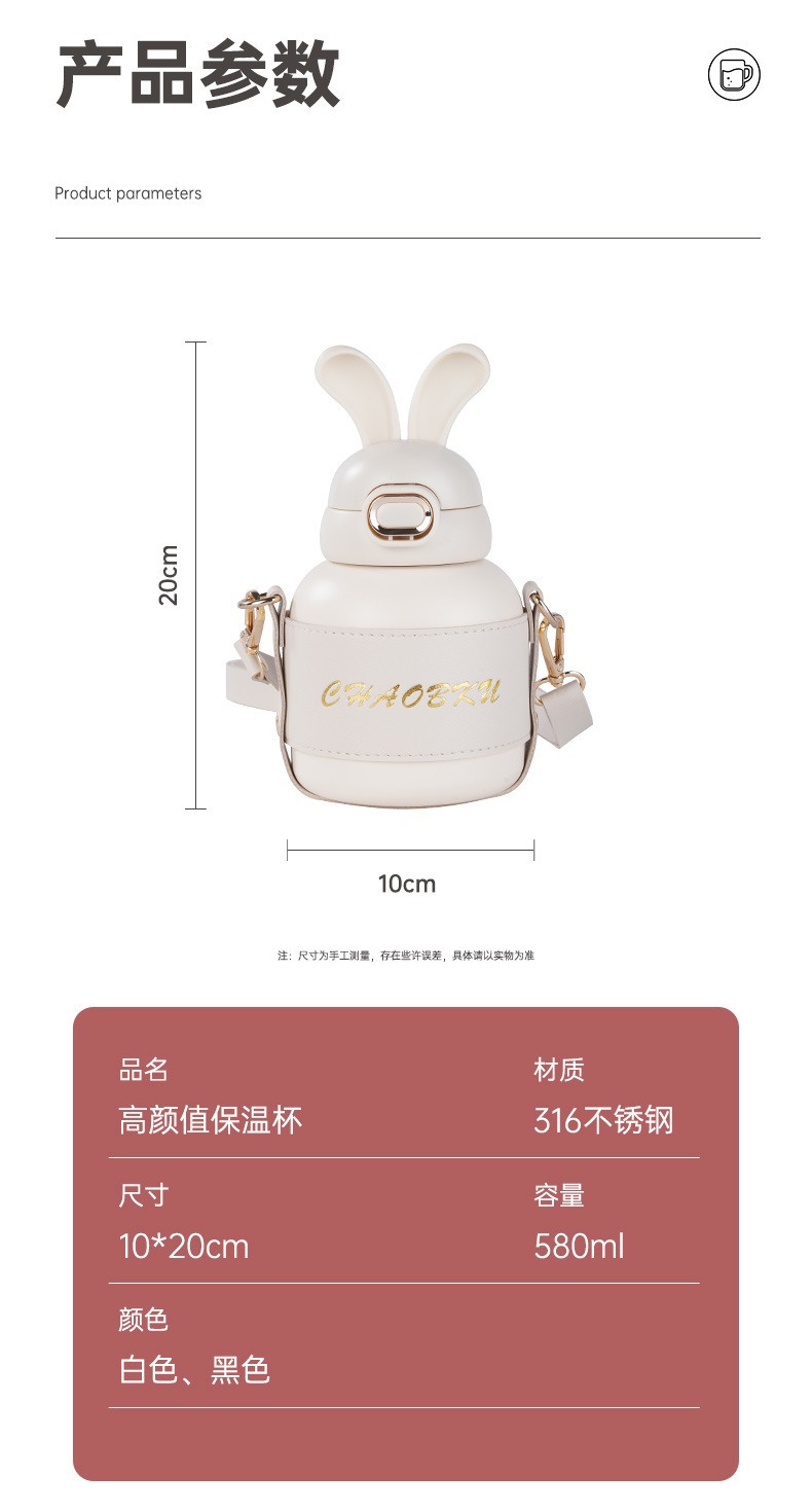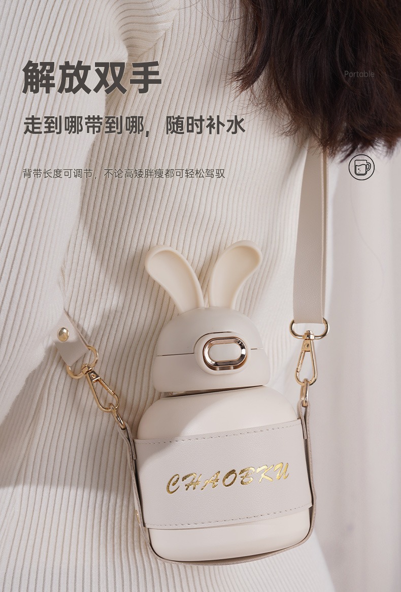 학생 물컵 대용량 어린이 보온병 컵 316 식품 학년 빨대 아이스 불리 컵 귀여운 고가 토끼 귀