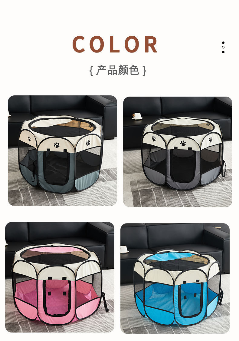 애완 동물 팔각형 케이지 접이식 개 케이지 방수 옥스포드 천 애완 동물 텐트 이동식 및 빨 스크래치 방지 개 고양이 재료화 방