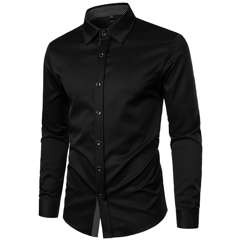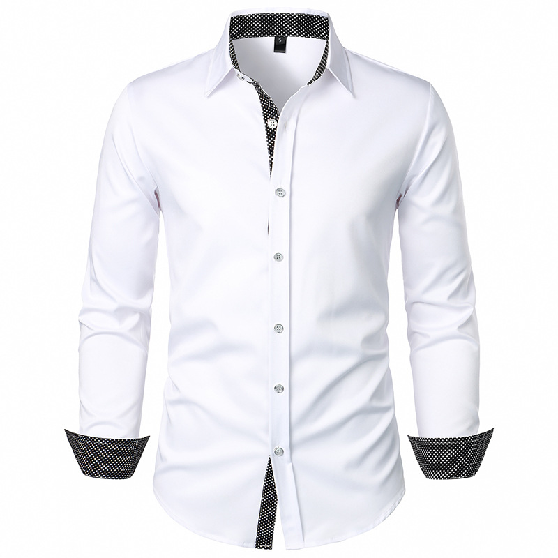 아마존 새로운 남성 도트 컬러 블록 캐주얼 긴 소매 셔츠 A323