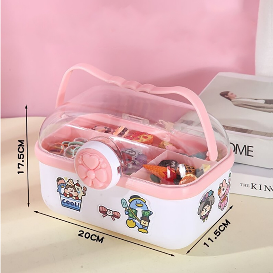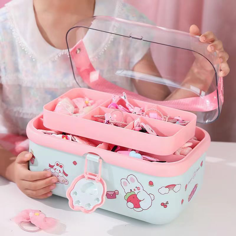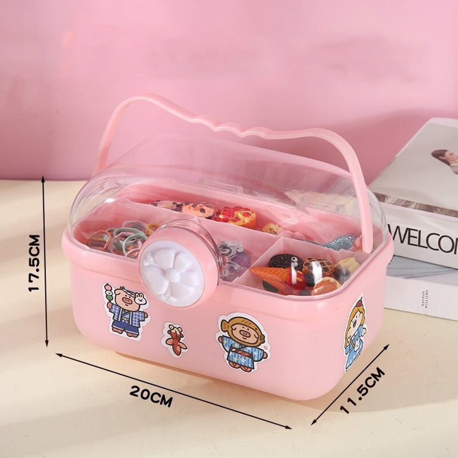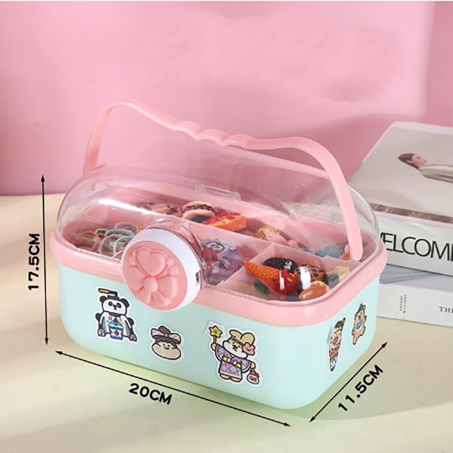귀여운 보석 저장 상자 다층 대용량 데스크탑 어린이 헤어 액세서리 조합 타일 상자 투명 휴대용 저장 상자