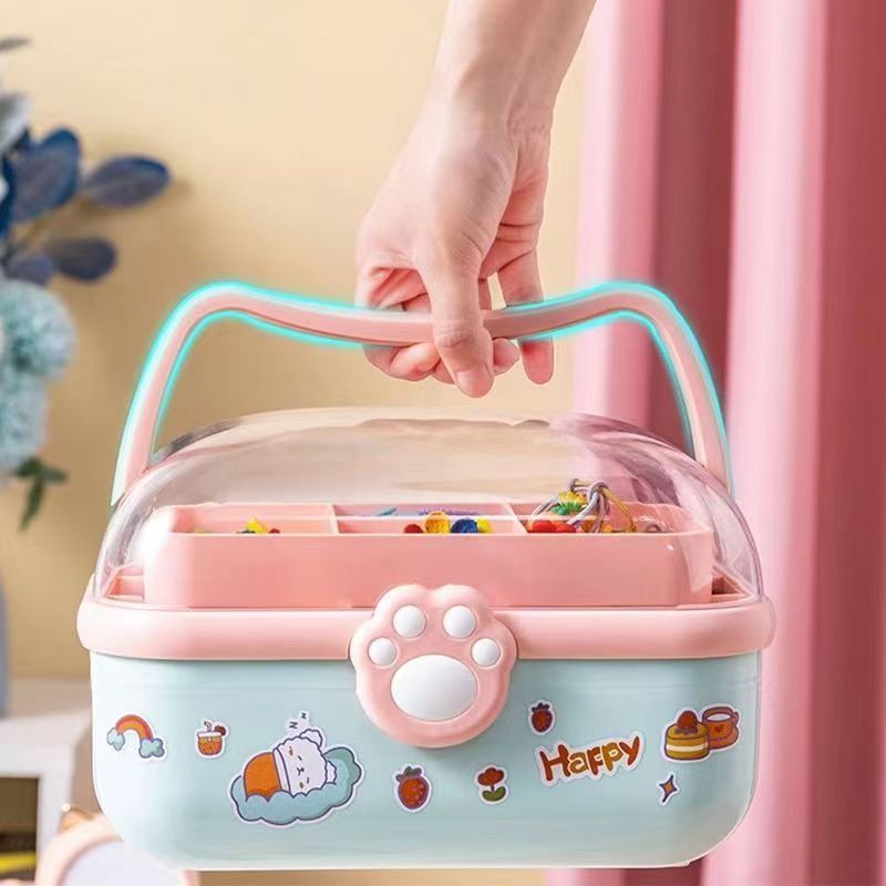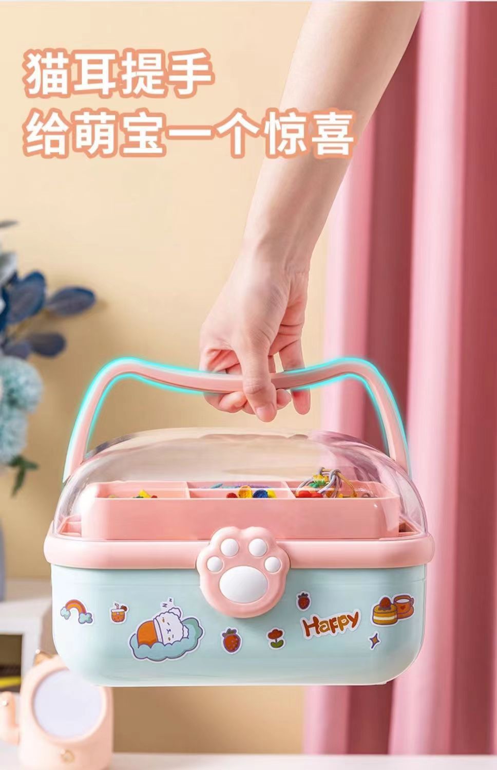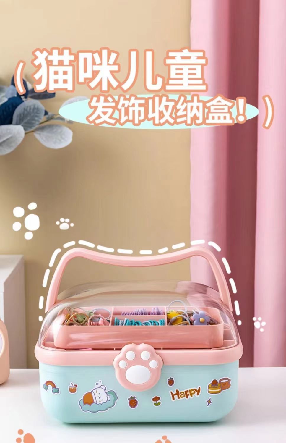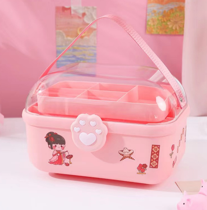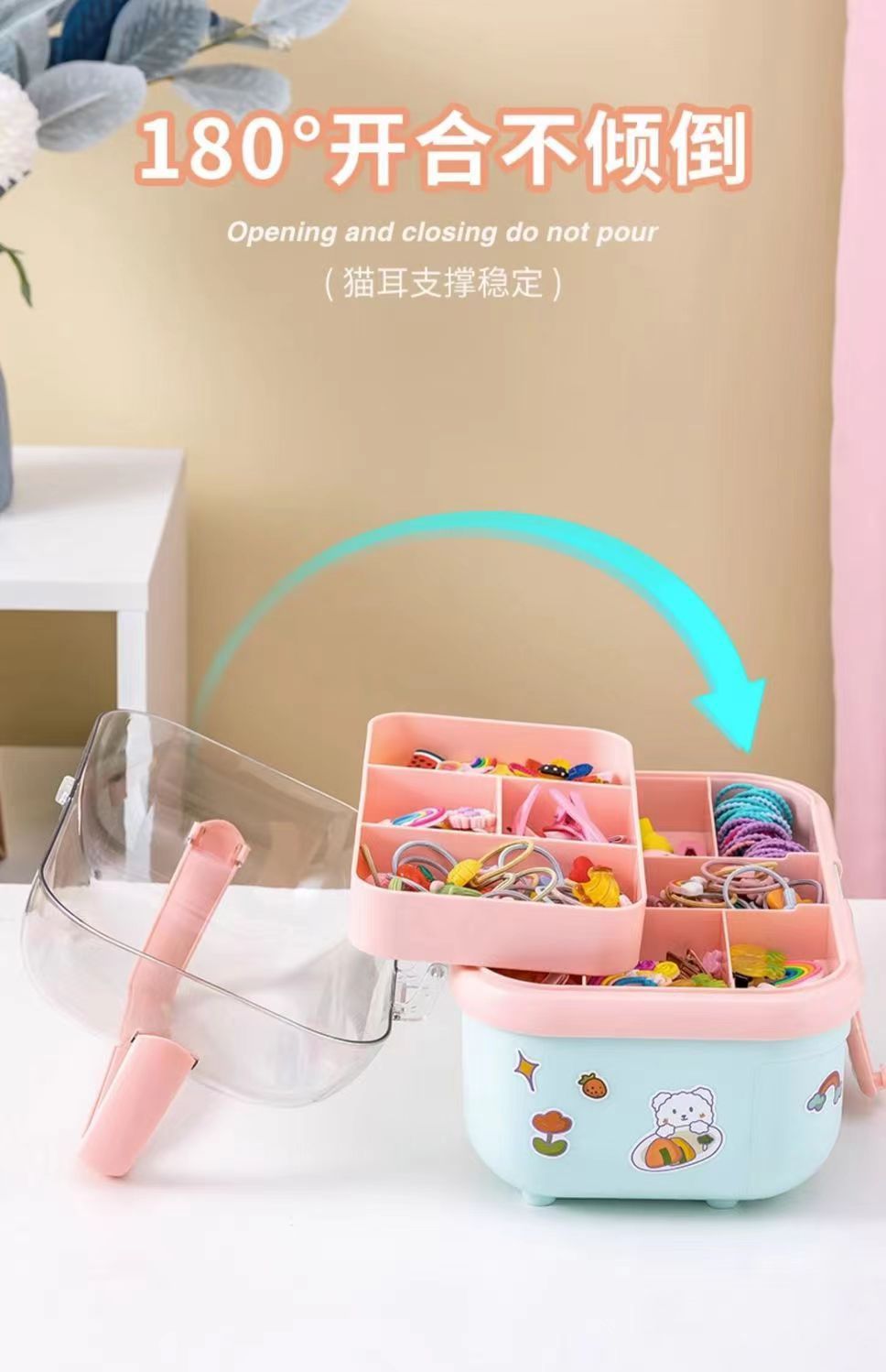 귀여운 보석 저장 상자 다층 대용량 데스크탑 어린이 헤어 액세서리 조합 타일 상자 투명 휴대용 저장 상자스토어 가기