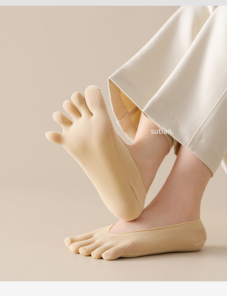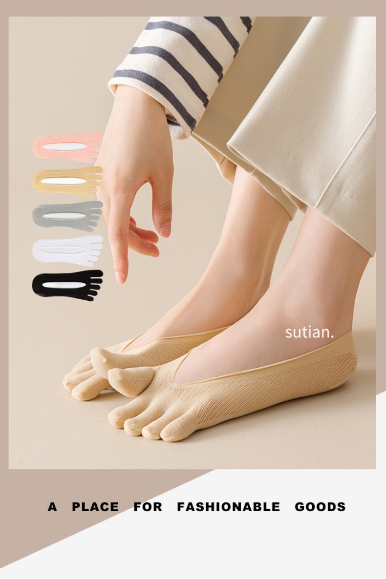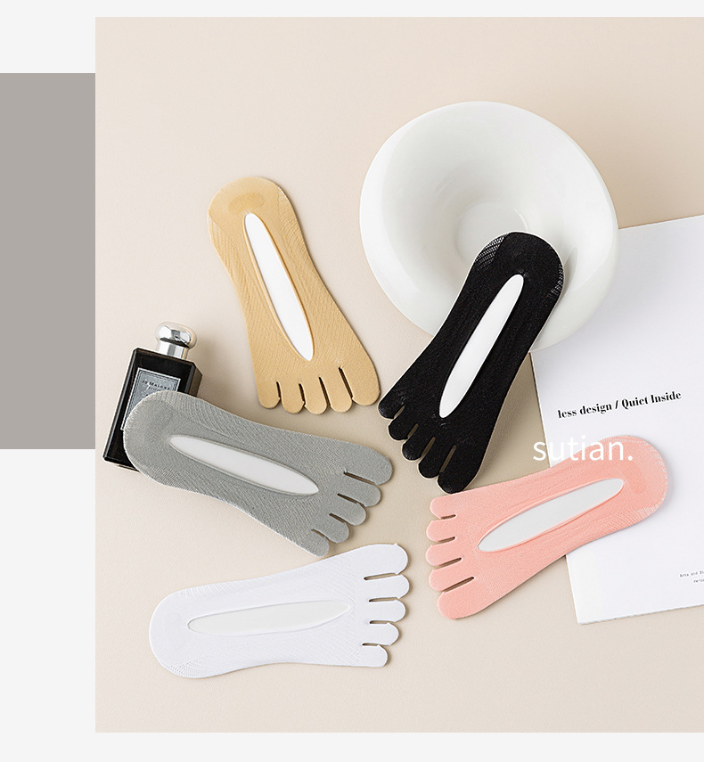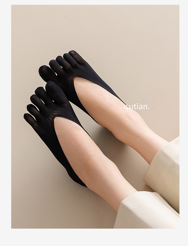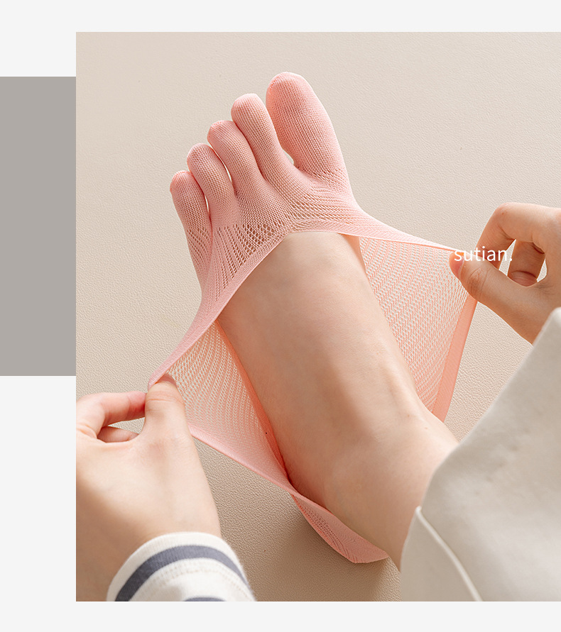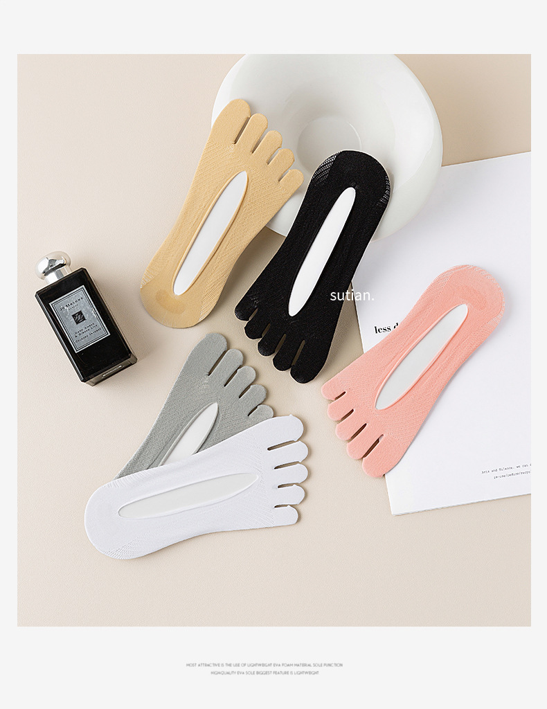 여성용 5발가락 양말, 여름용 얇은 벨벳 메쉬 발가락 양말, 실리콘 미끄럼 방지 얕은 입구 투명 양말, 5발가락 양말스토어 가기