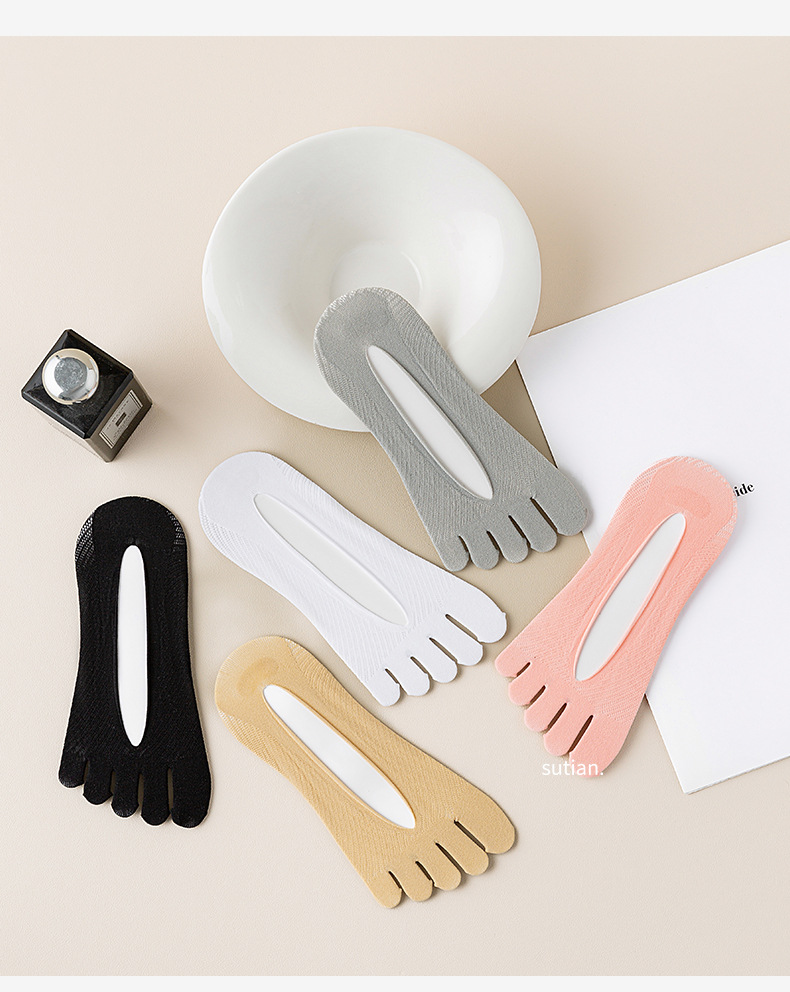 여성용 5발가락 양말, 여름용 얇은 벨벳 메쉬 발가락 양말, 실리콘 미끄럼 방지 얕은 입구 투명 양말, 5발가락 양말