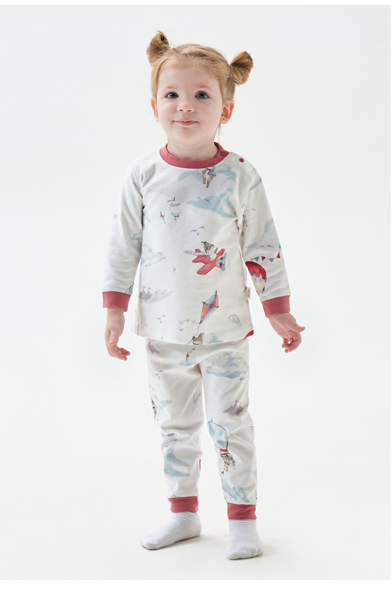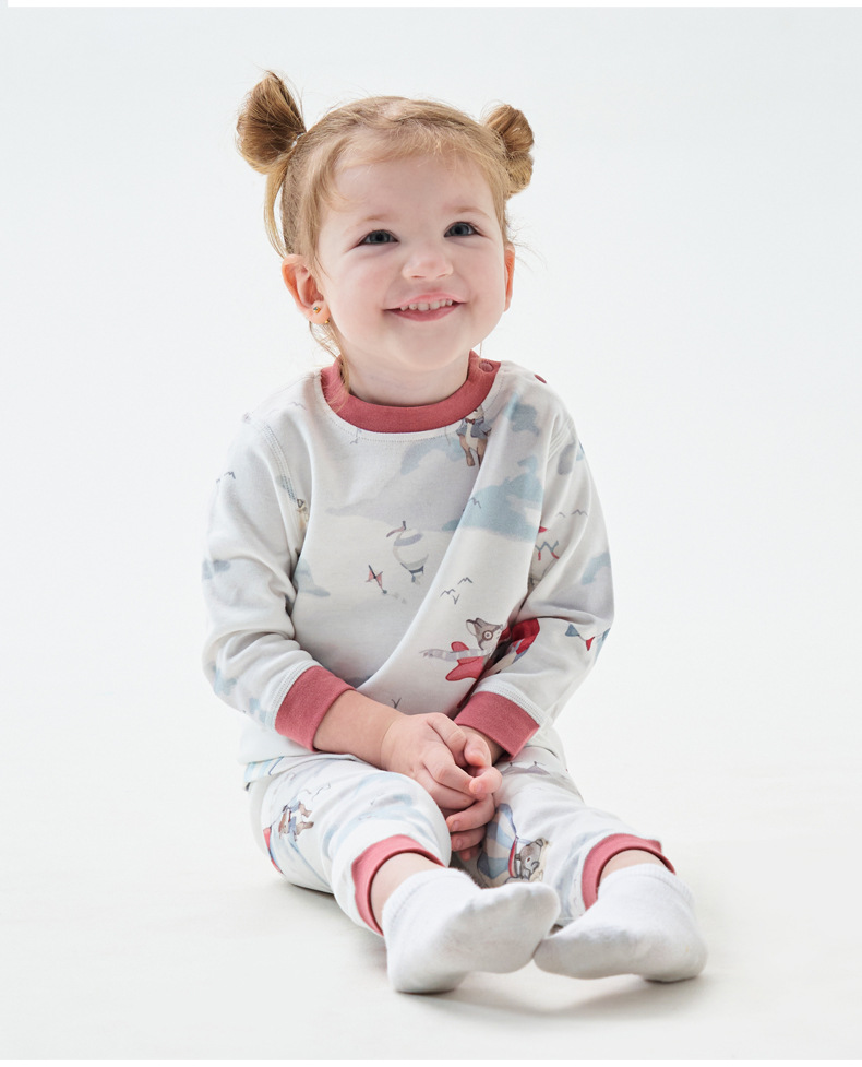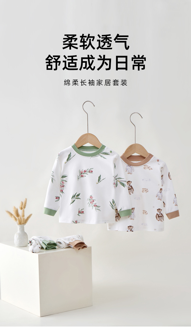사계절을위한 아기 잠자는 옷 여자와 아기 남자의 순면 긴 소매 가정 옷 세트 가을 옷과 가을 바지 분할 어린이 속옷스토어 가기