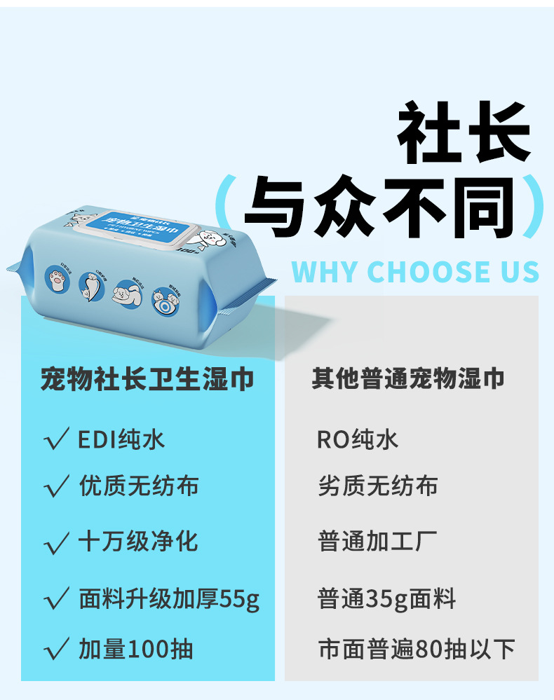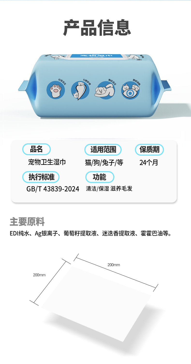반려동물 사장 위생 물티슈 개와 고양이 전용 물티슈 일회용 노워시 청소 세면도구 탈취