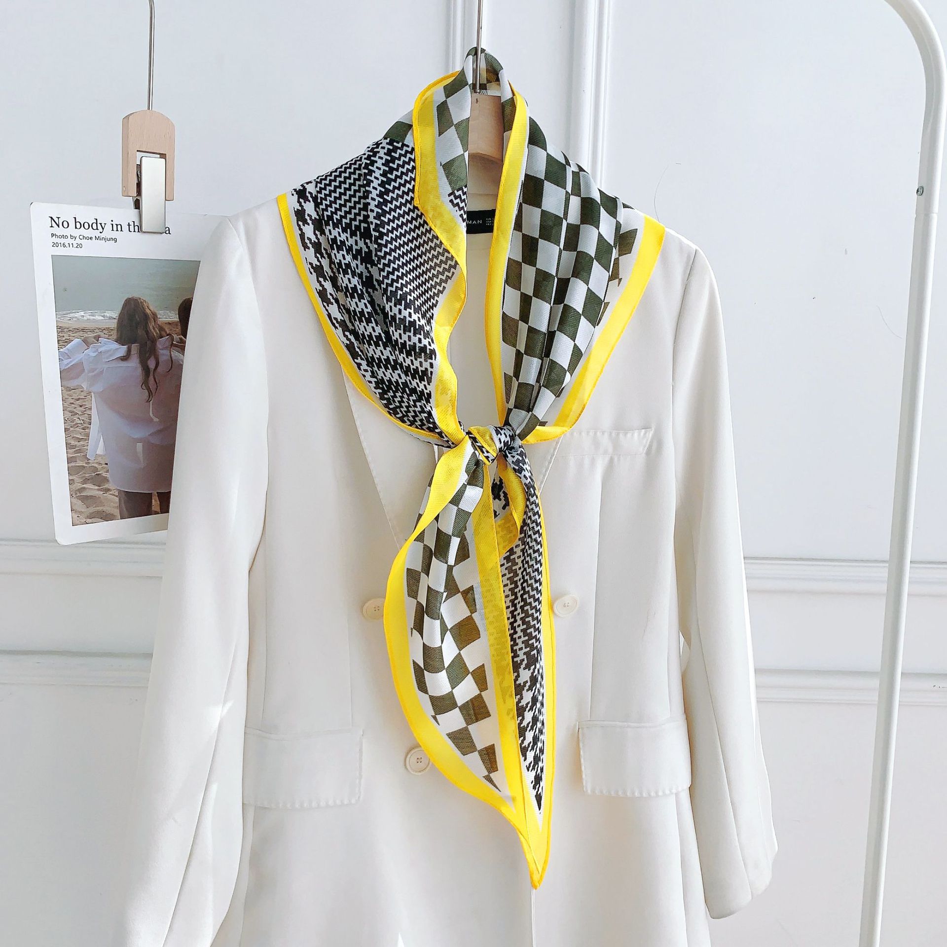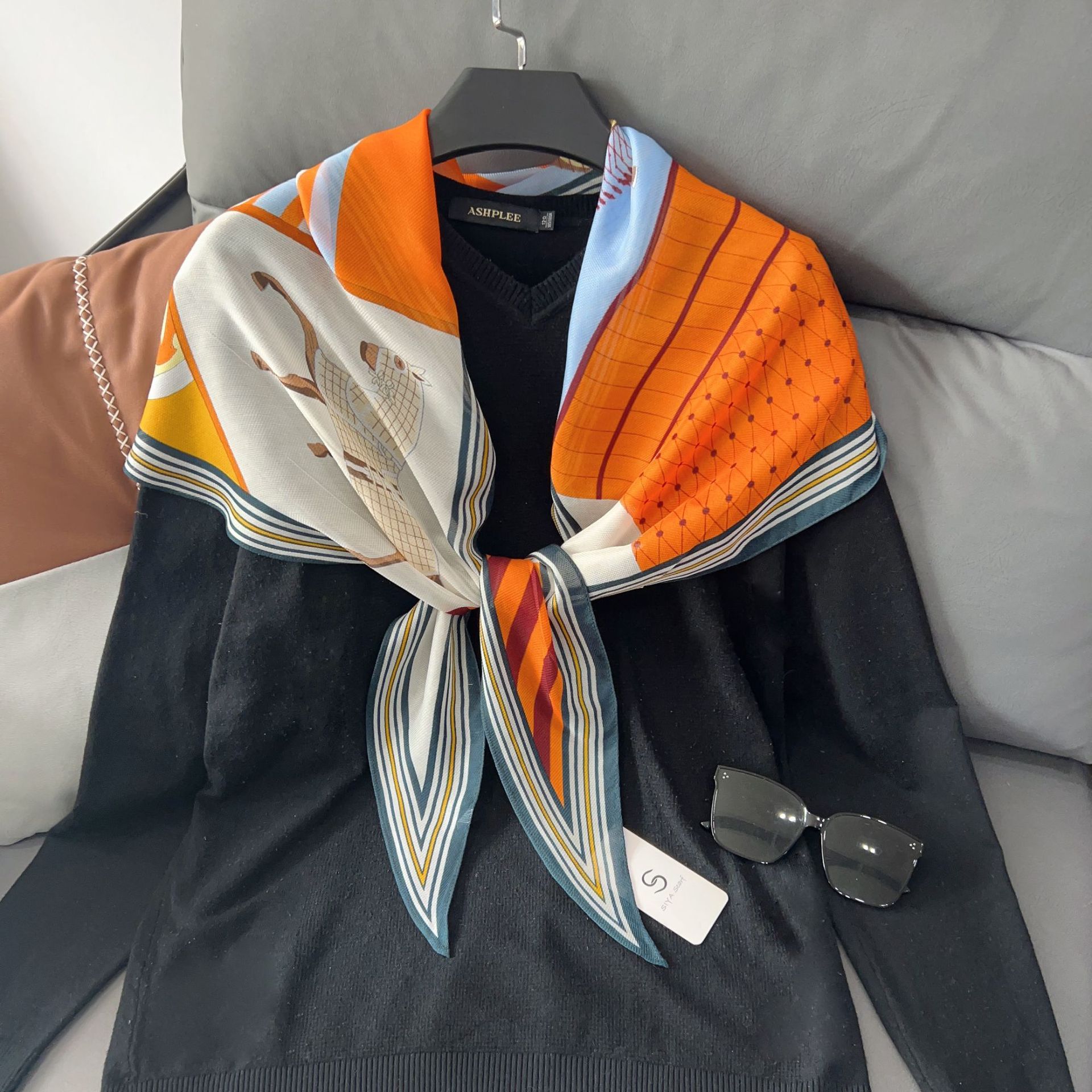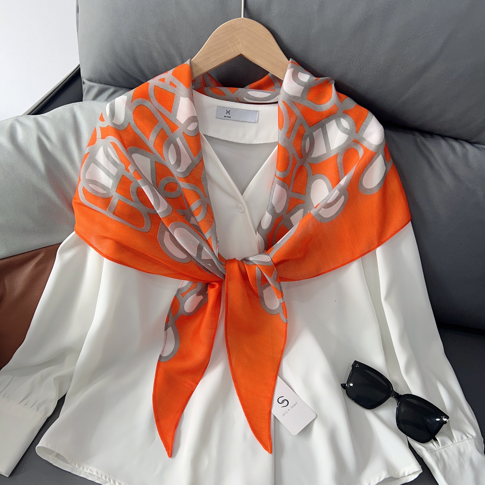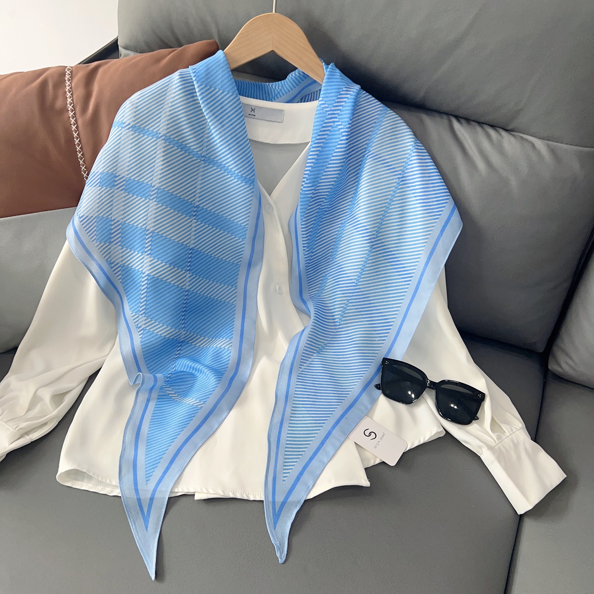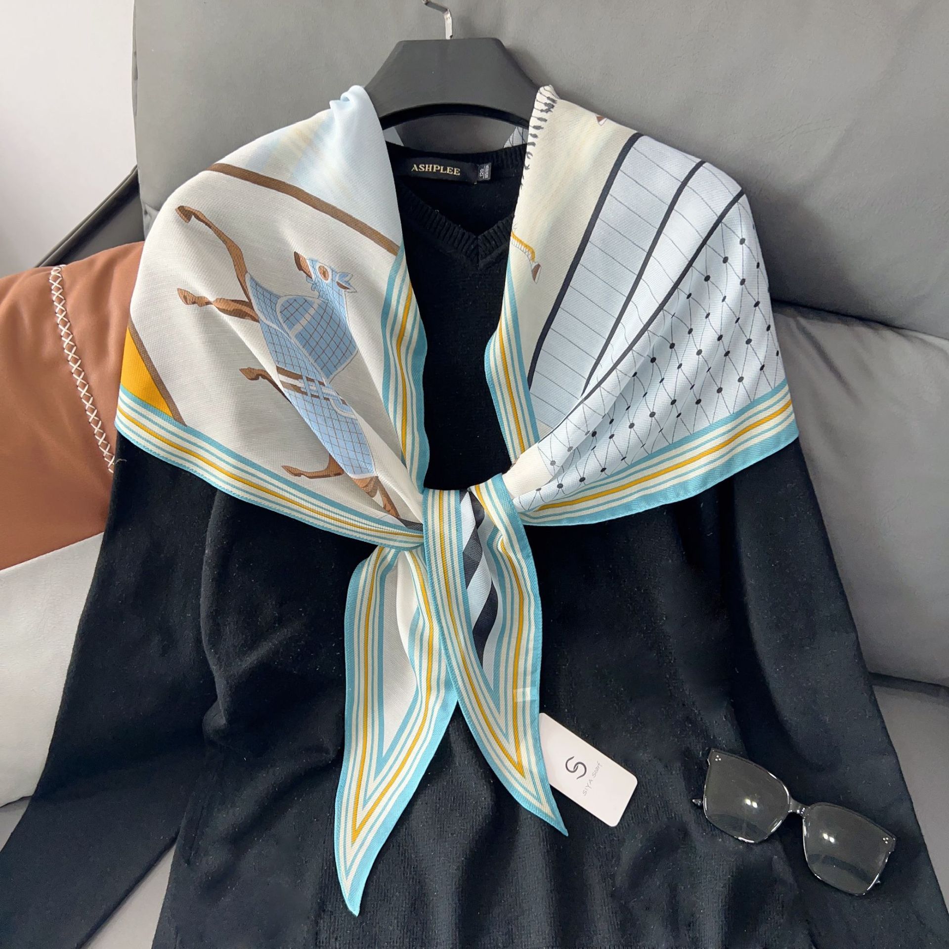 패셔너블한 프린트 얇은 매듭 장식 실크 스카프 여성용 2026 신상 컬러 블록 다이아몬드 모양 숄 자외선 차단 스몰 스카프스토어 가기