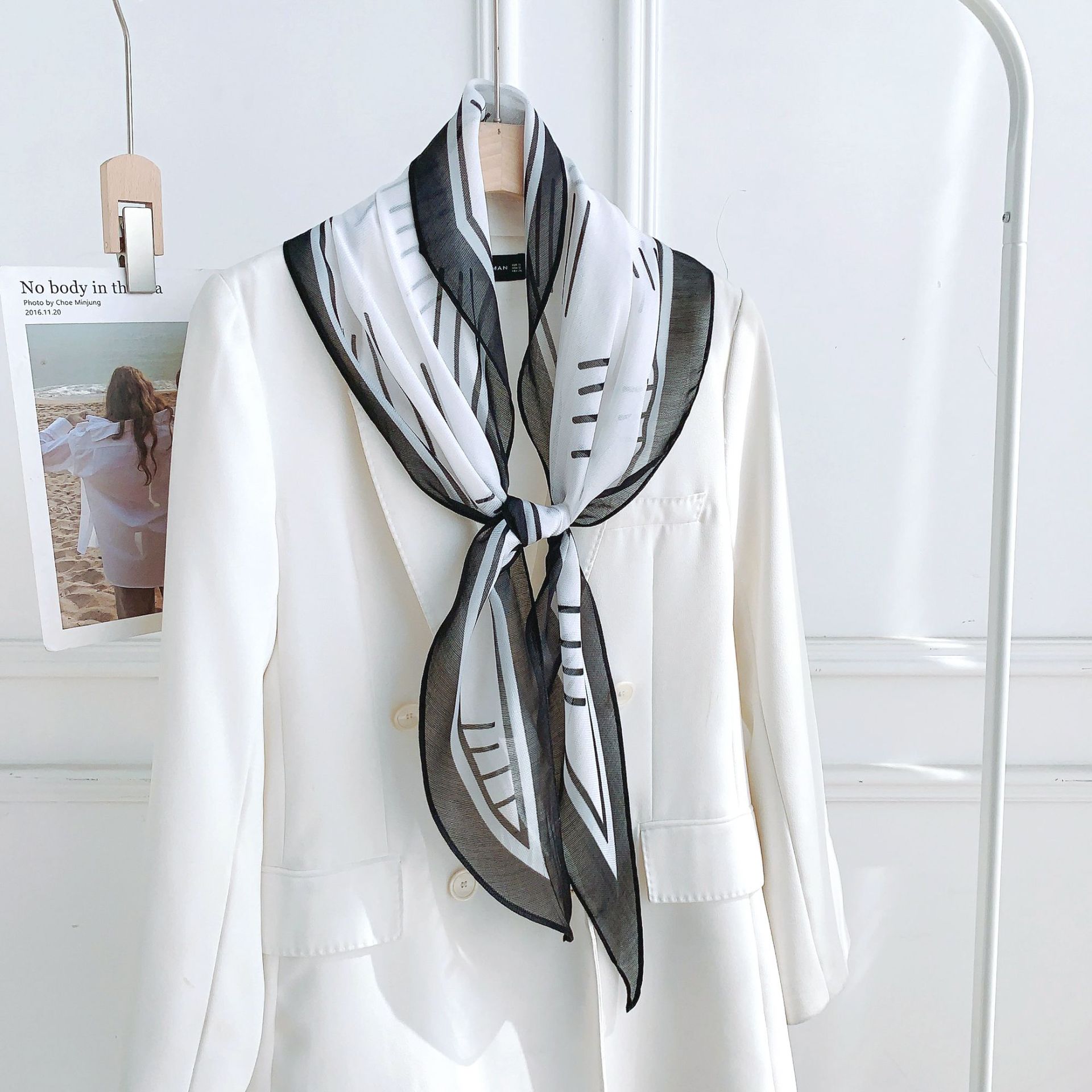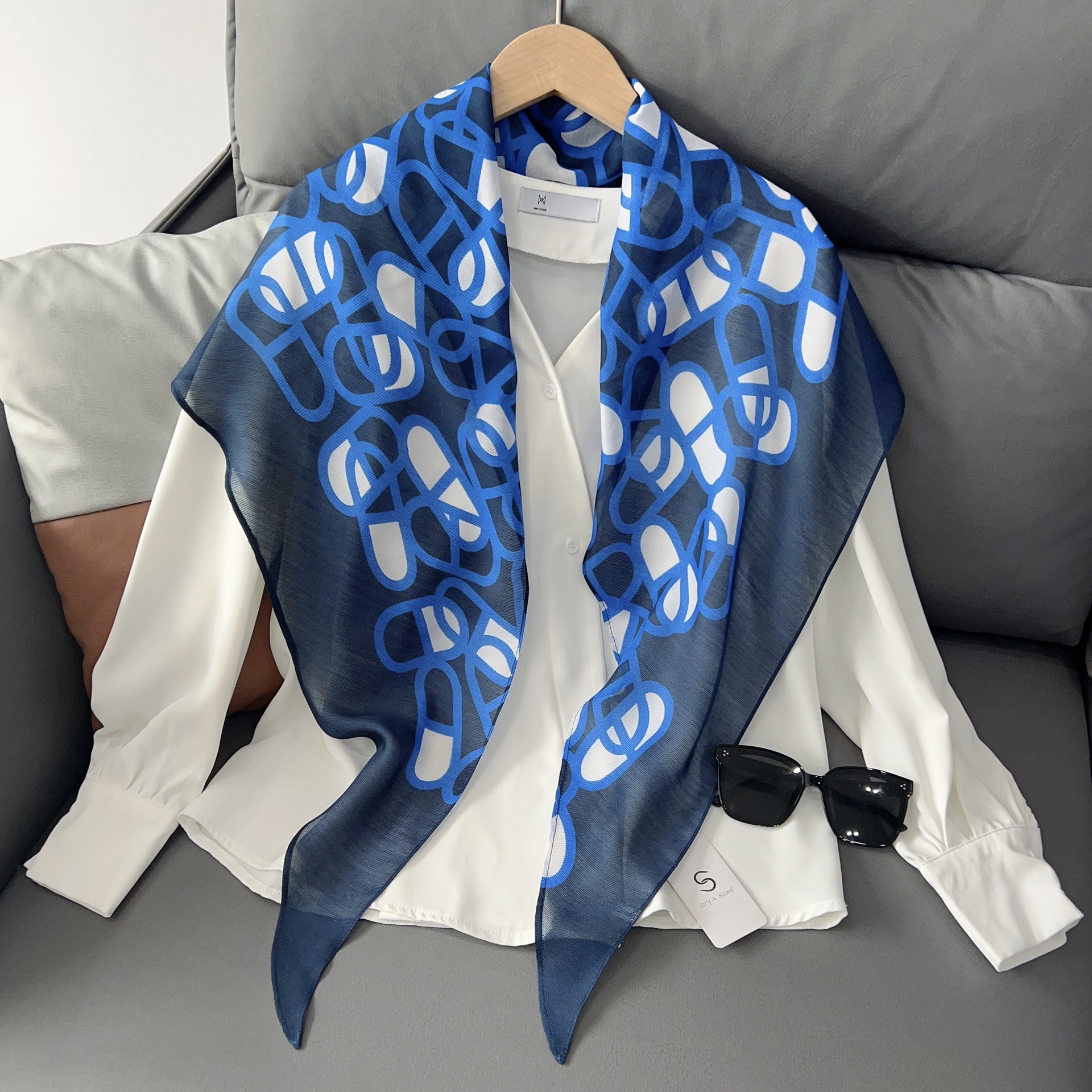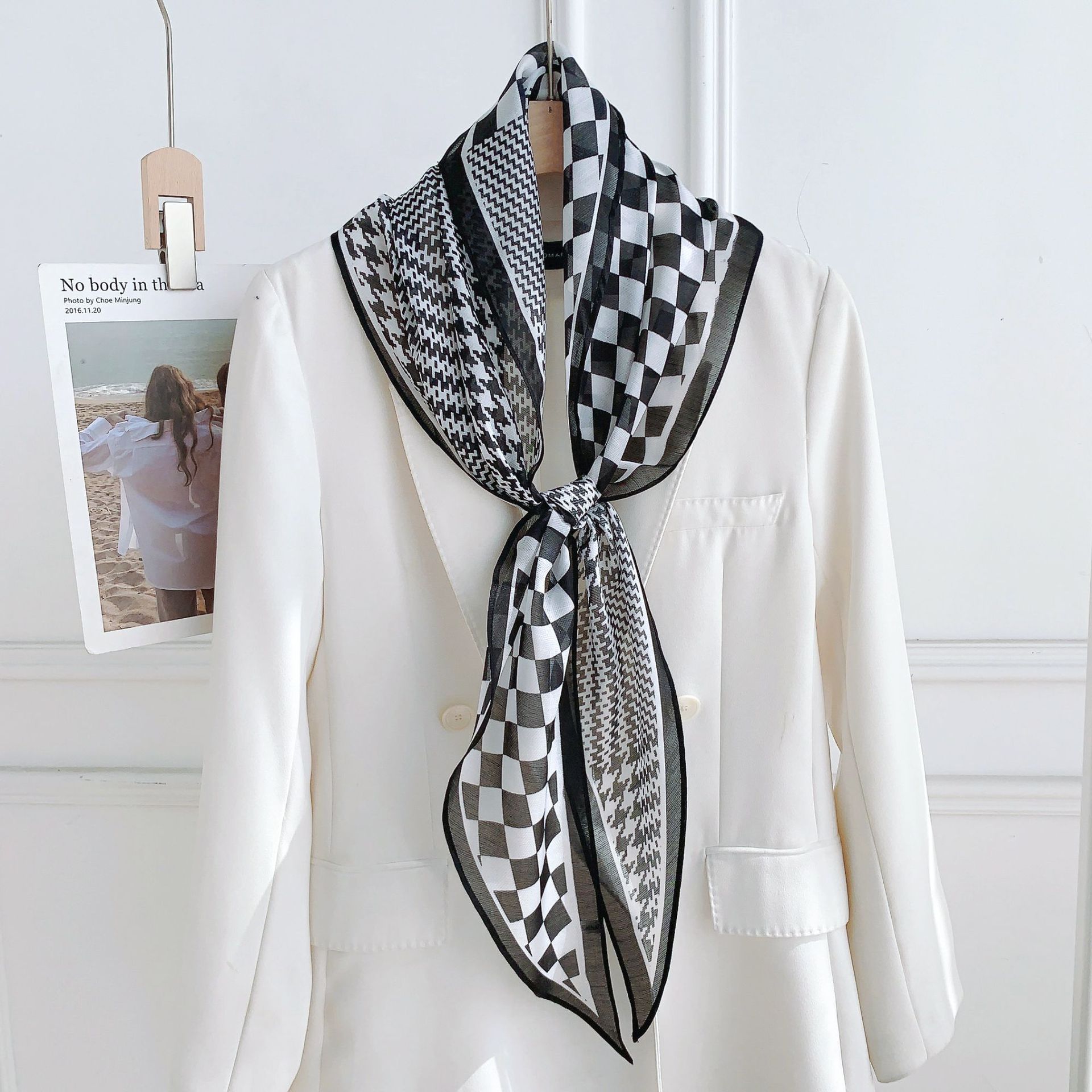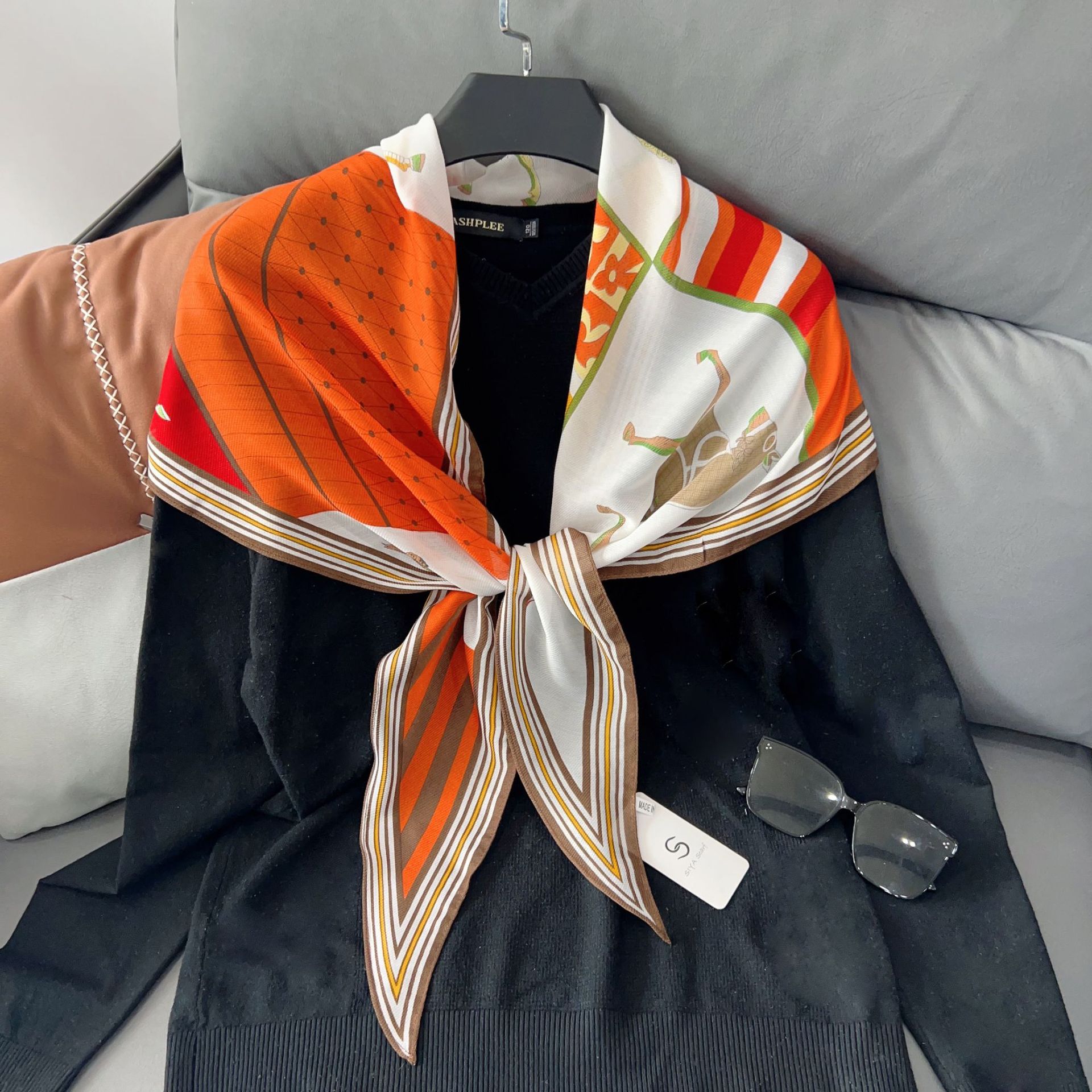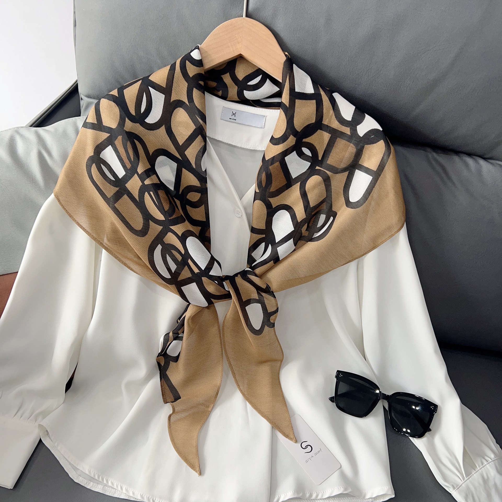패셔너블한 프린트 얇은 매듭 장식 실크 스카프 여성용 2026 신상 컬러 블록 다이아몬드 모양 숄 자외선 차단 스몰 스카프스토어 가기