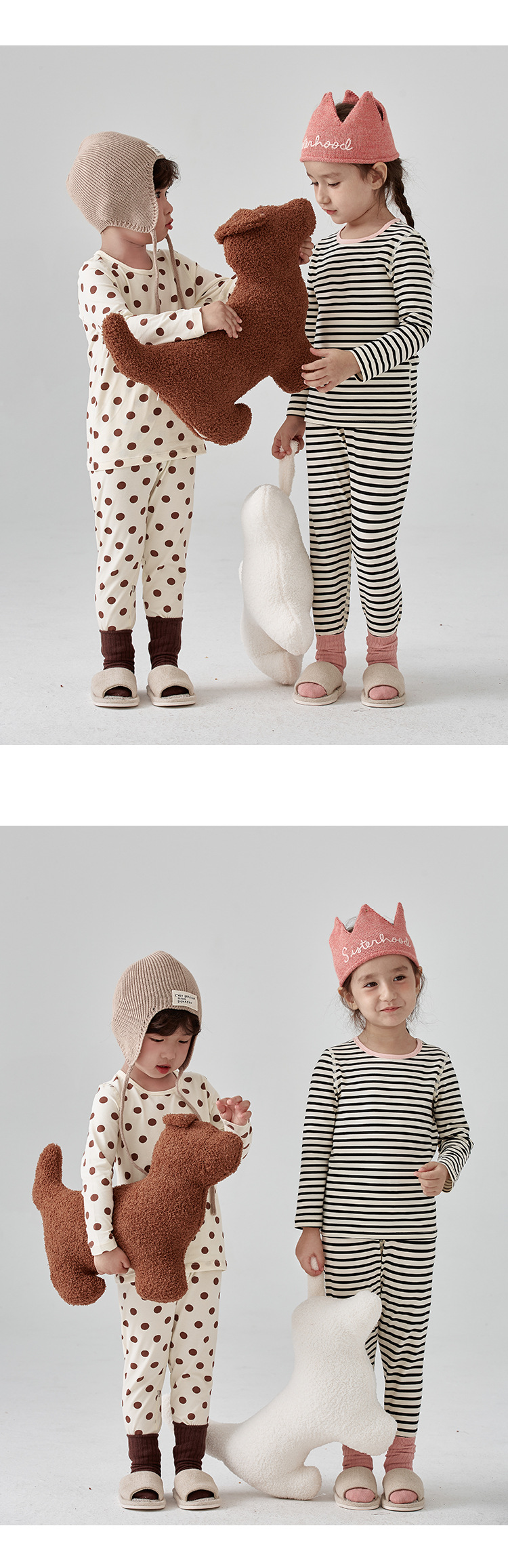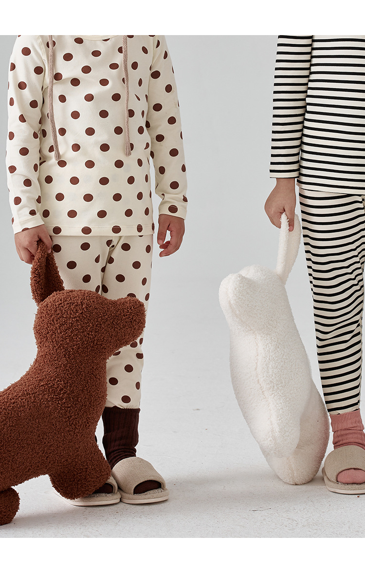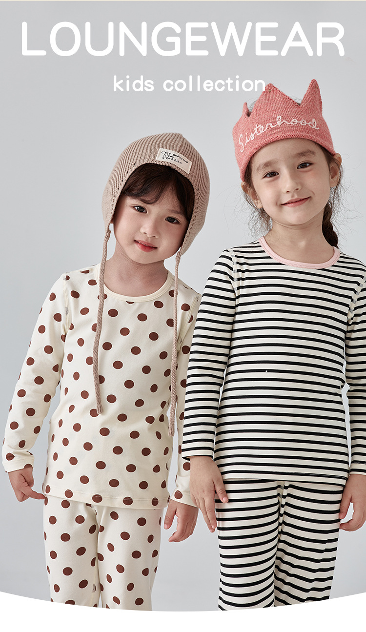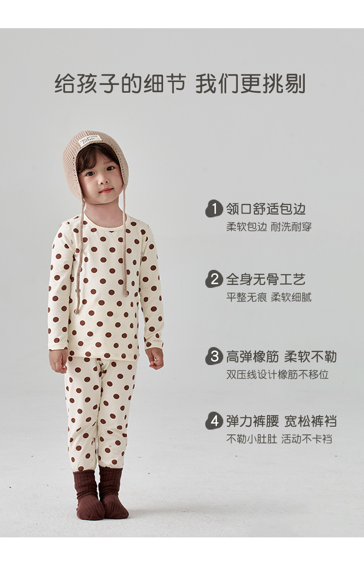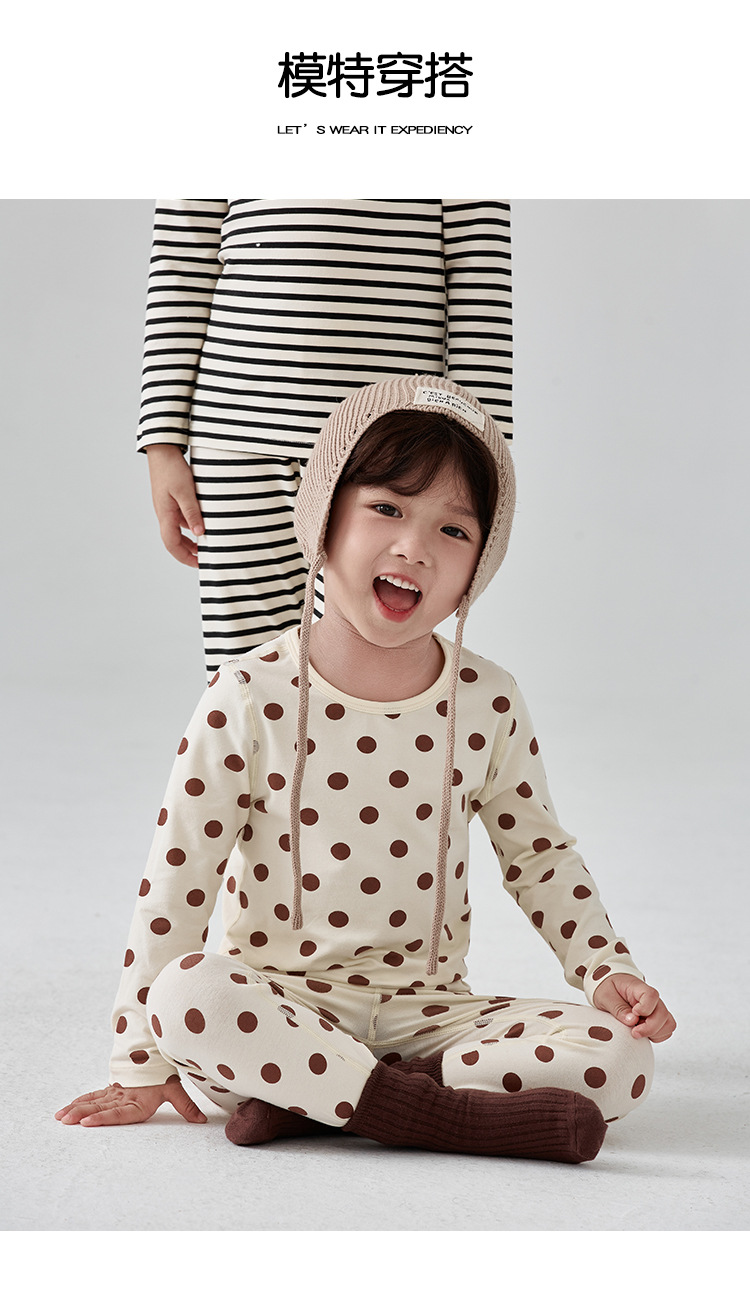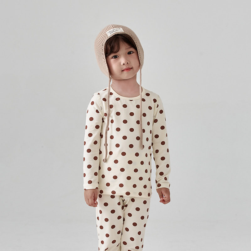 J011 어린이 순면 가정 옷 선물 상자 디자이너 코코 웨이브 도트 어린이 열 속옷 가을 옷 세트스토어 가기