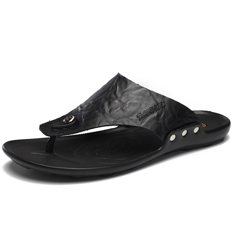 크로스 보더 여름 플립 플롭 남성용 겉옷 슬리퍼 청소년 유행 신발 부드러운 바닥 리벳 클립 발가락 비치 신발 남성용 소가죽 슬리퍼스토어 가기