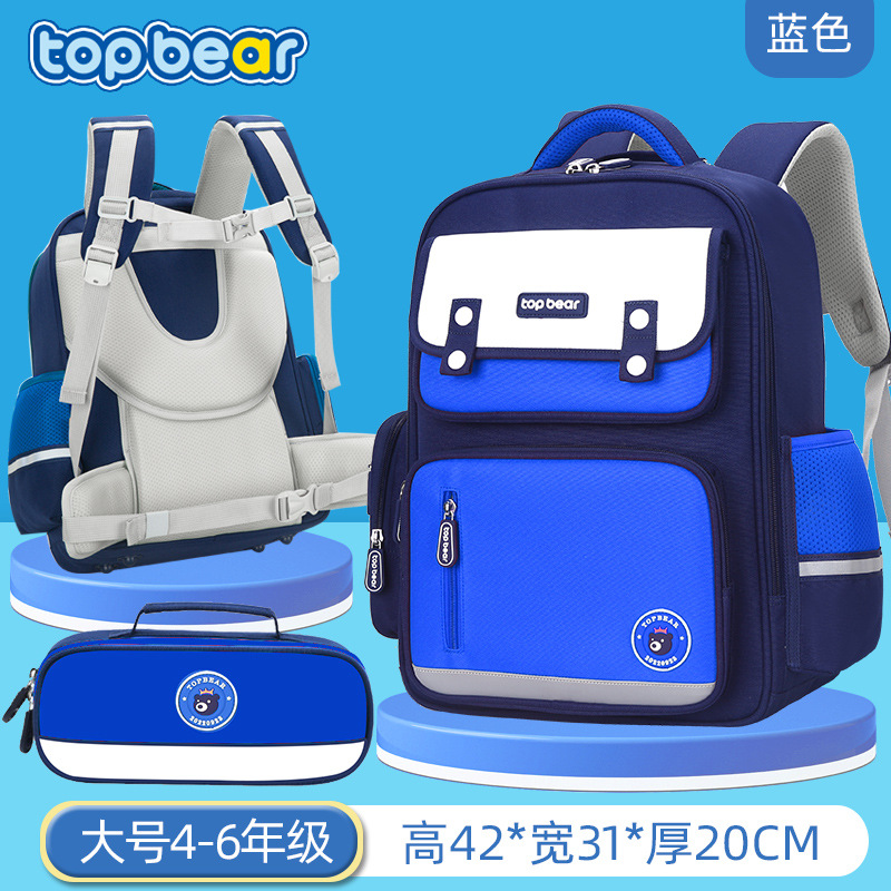 어린이 능선 보호 책가방 토비 베어 어린이 책가방 1-3-6 학년 초등 학생 배낭 남성과 여성을위한 로그를 추가 할 수 있습니다스토어 가기