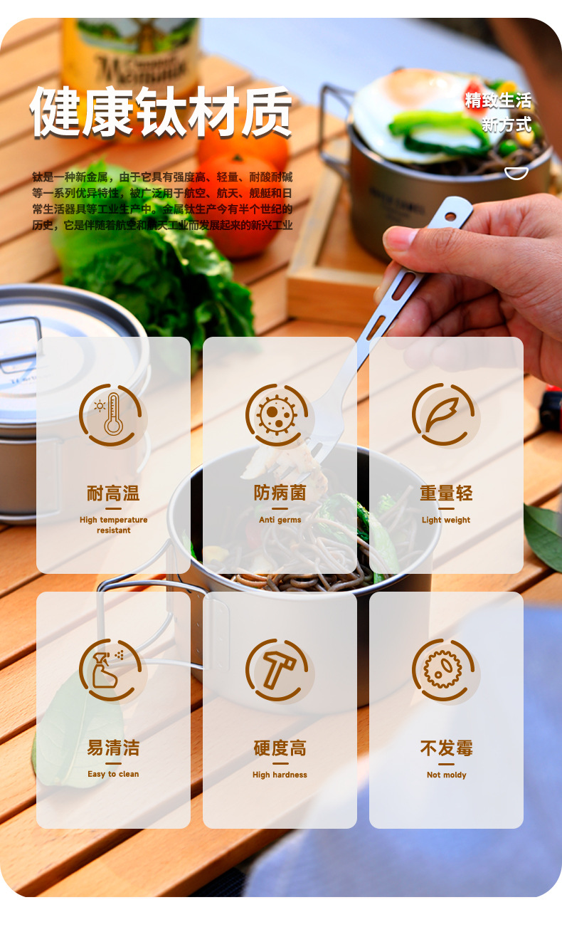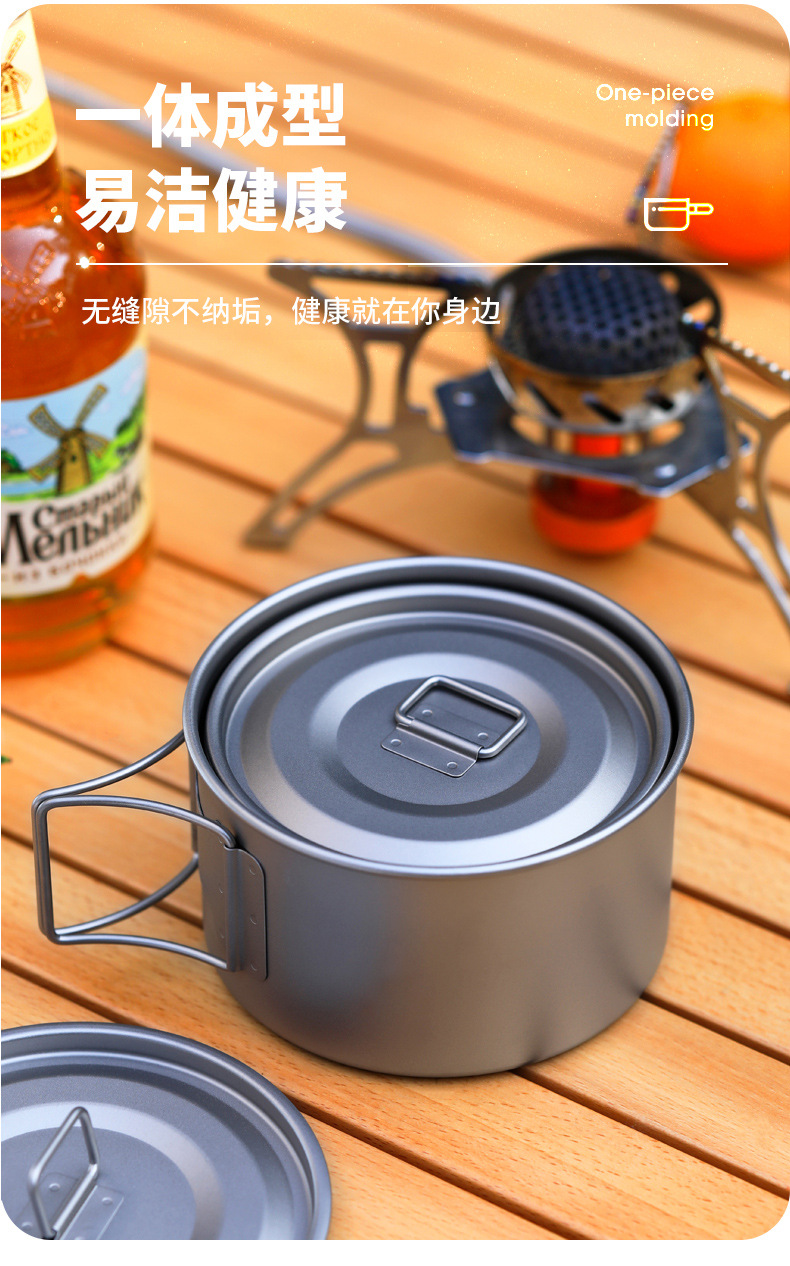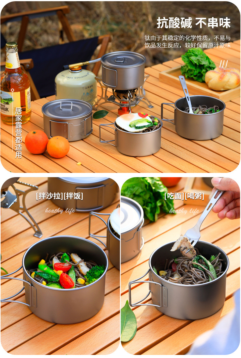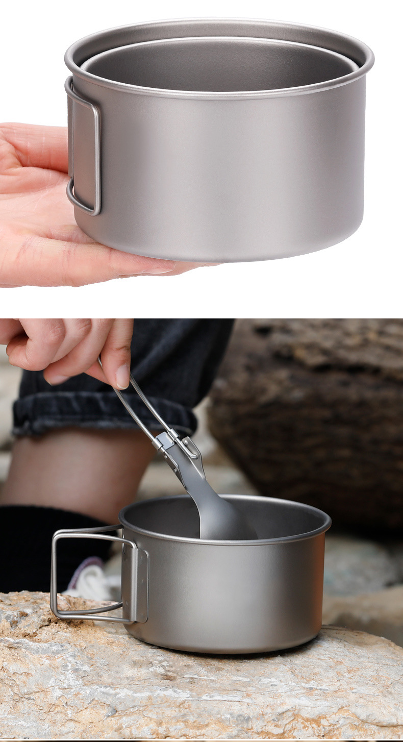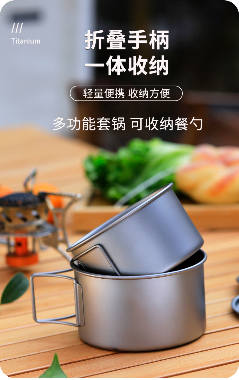 야외 순수 티타늄 그릇 화상 방지 세트 접이식 손잡이 휴대용 캠핑 피크닉 식기 가정용 티타늄 그릇 뚜껑 티타늄 컵