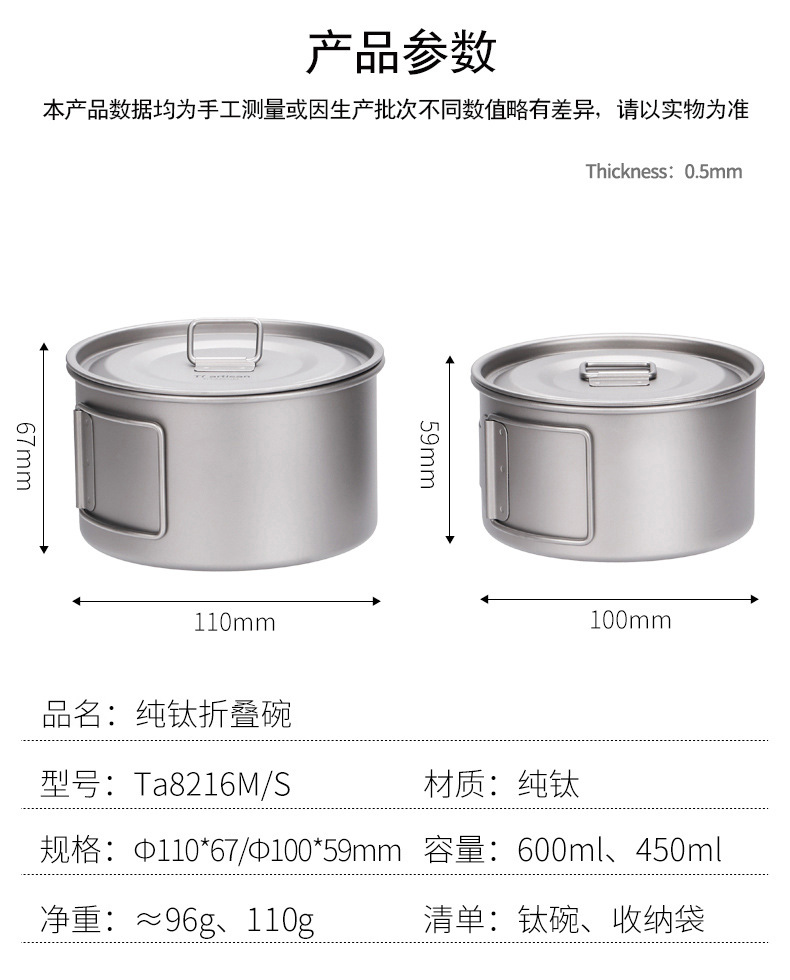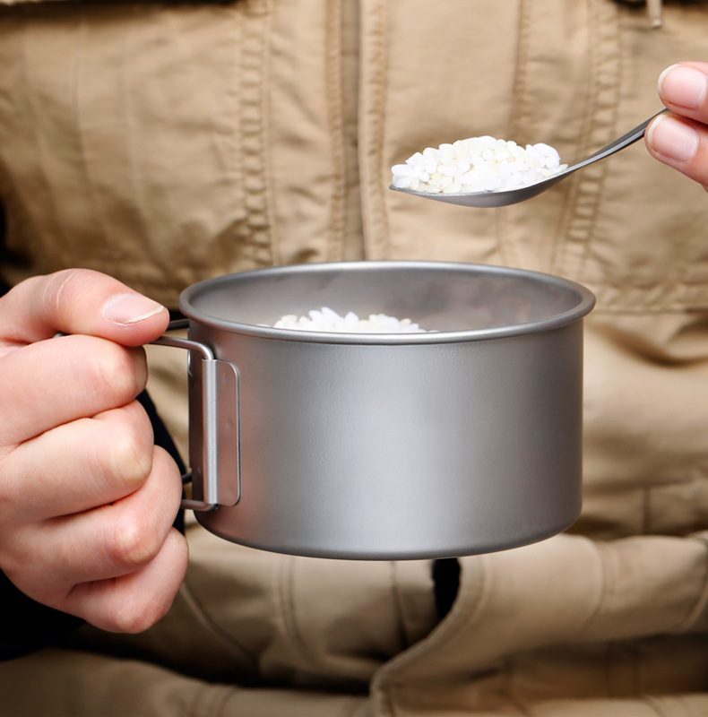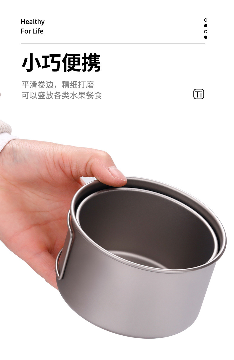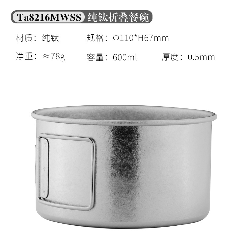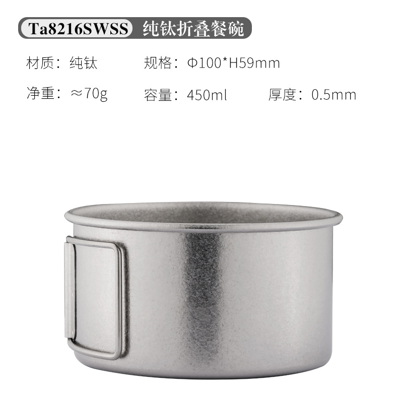 야외 순수 티타늄 그릇 화상 방지 세트 접이식 손잡이 휴대용 캠핑 피크닉 식기 가정용 티타늄 그릇 뚜껑 티타늄 컵스토어 가기
