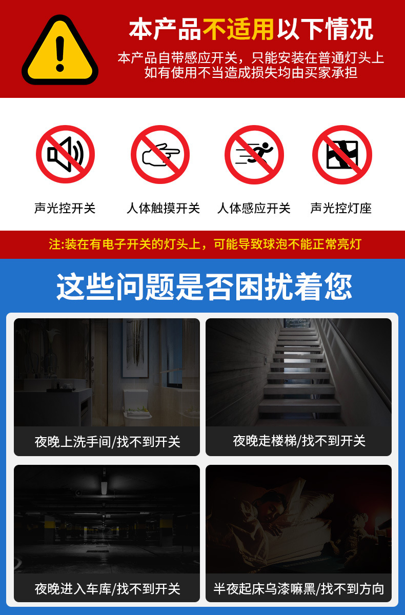레이더 인체 유도 조명 소리 제어 소리 및 조명 제어 Led 조명 스마트 홈 복도 E27 나사 전구스토어 가기