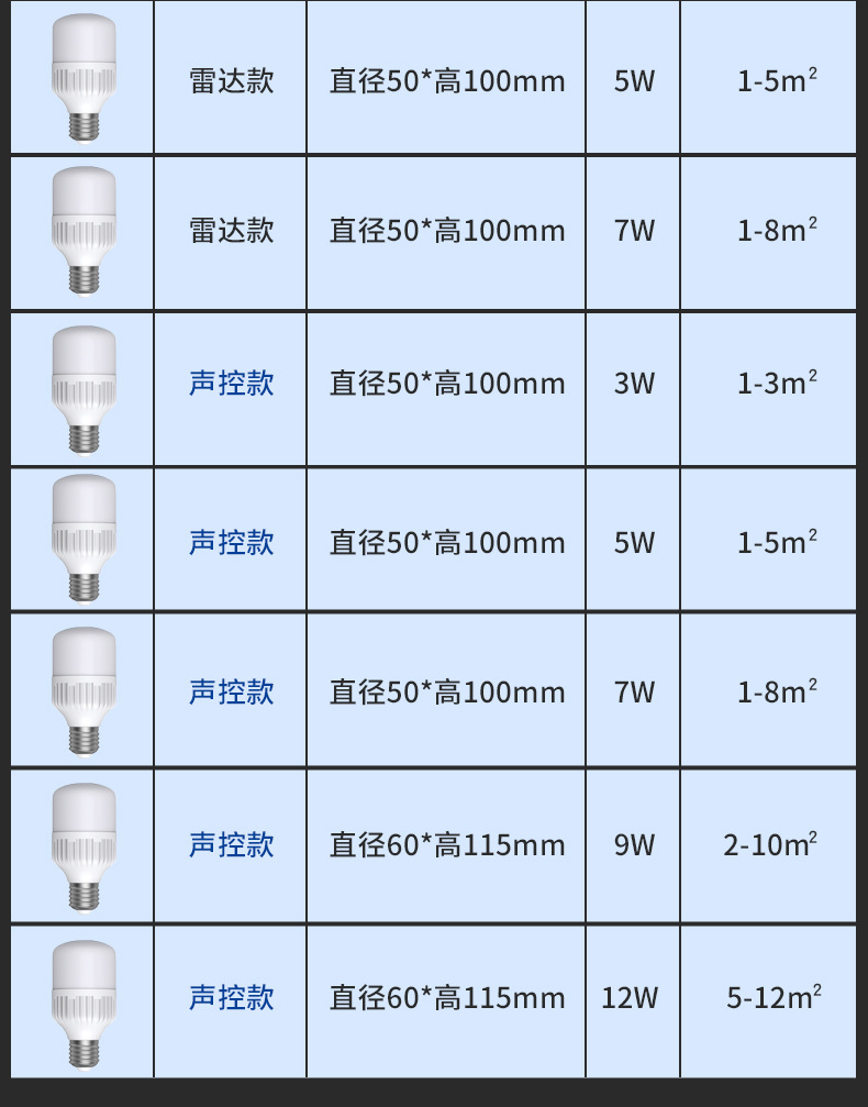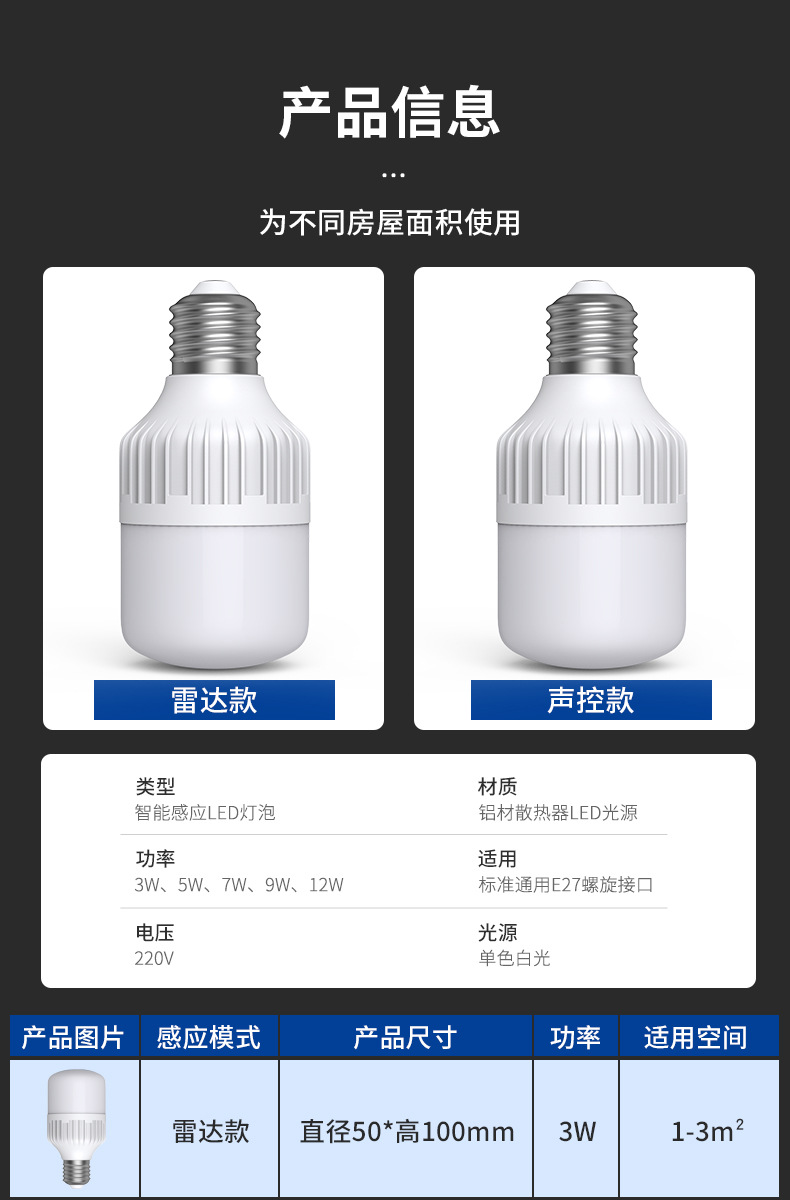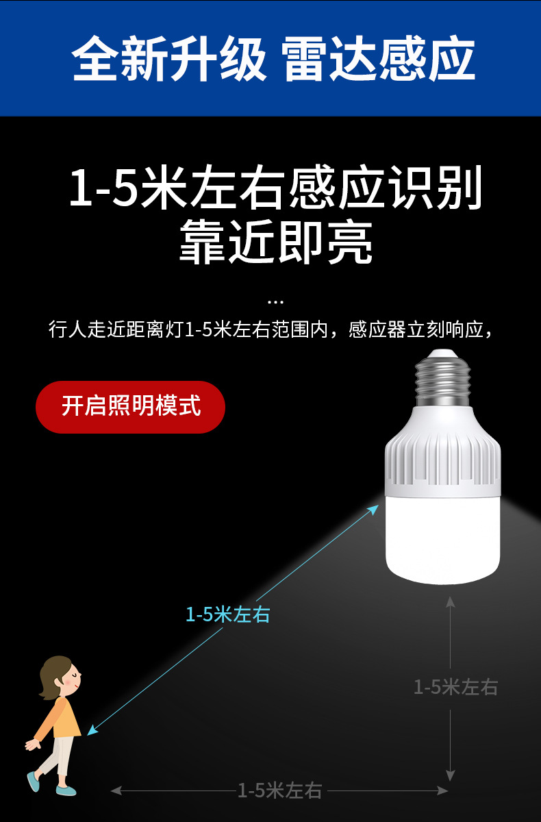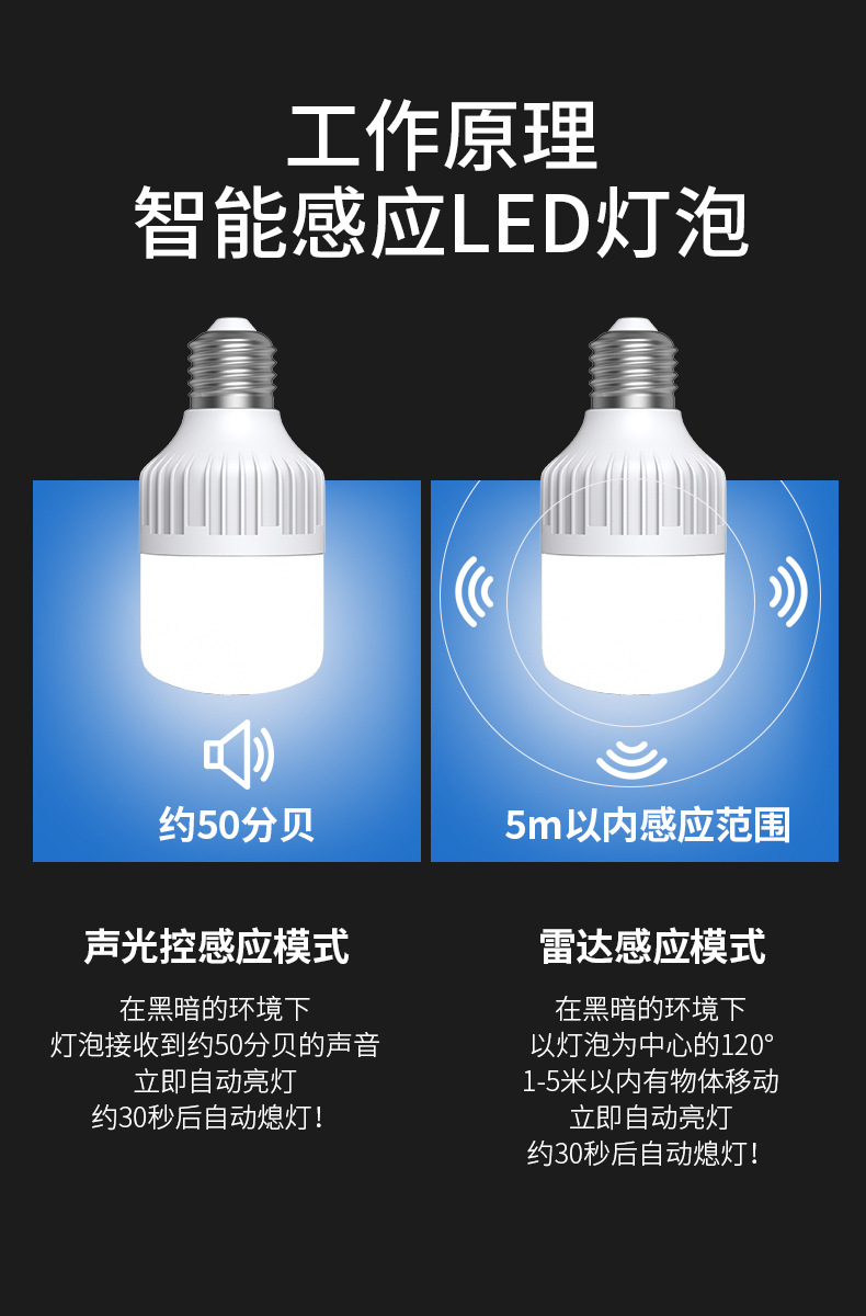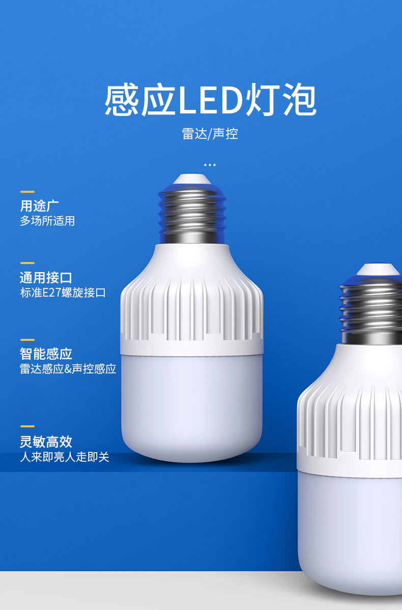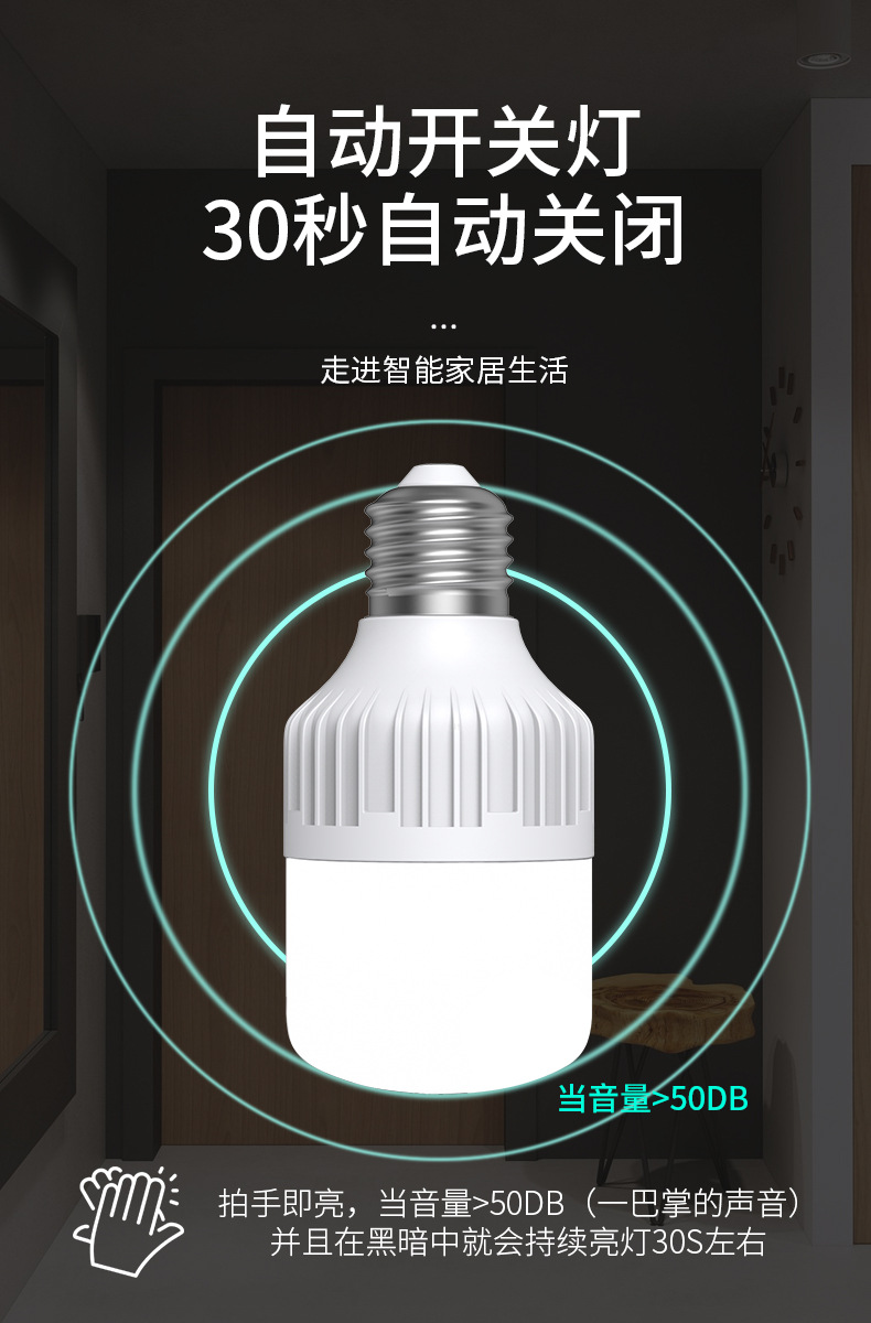 레이더 인체 유도 조명 소리 제어 소리 및 조명 제어 Led 조명 스마트 홈 복도 E27 나사 전구