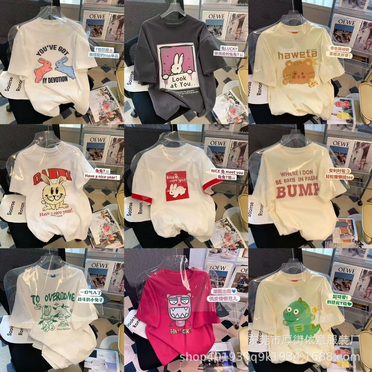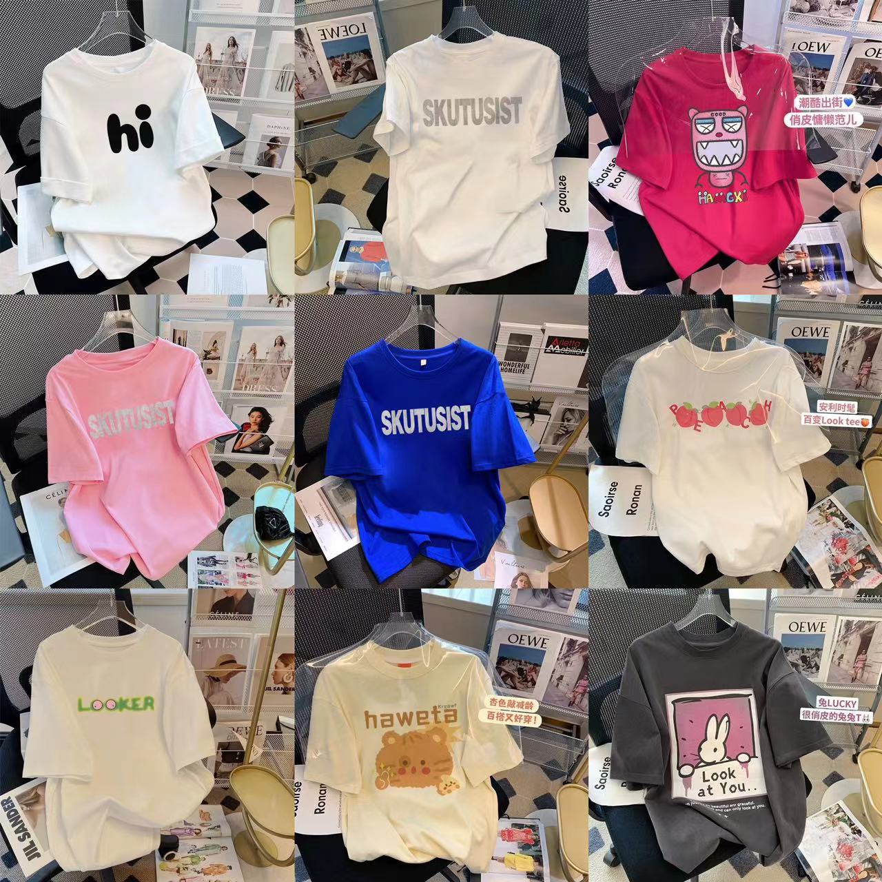 2 위안 여성 스톨 공급 도매 여름 새로운 짧은 소매 티셔츠 여성용 바지 셔츠 9.9 헤어스토어 가기