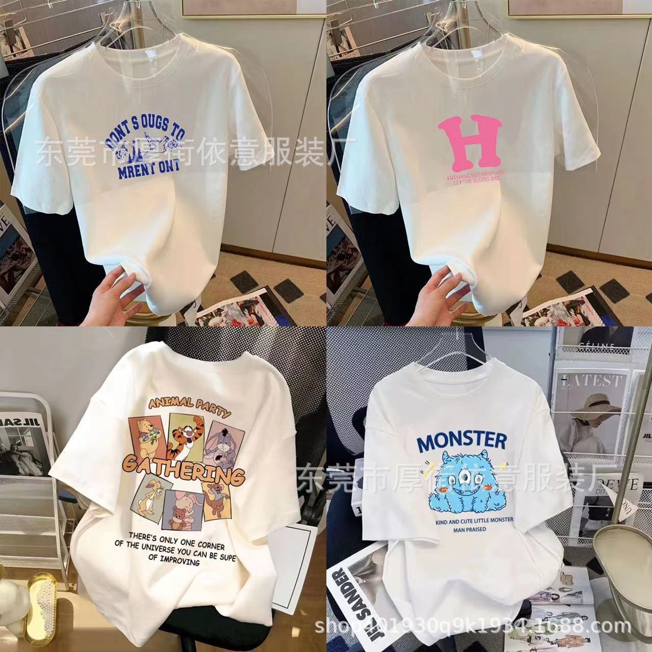 2 위안 여성 스톨 공급 도매 여름 새로운 짧은 소매 티셔츠 여성용 바지 셔츠 9.9 헤어