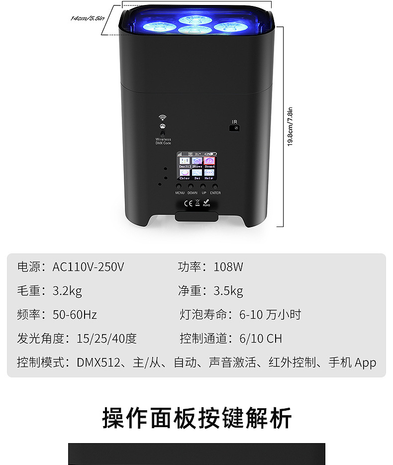 패튼 국경 무선 배터리 램프 휴대 전화 WiFi 원격 제어 6 18w 배터리 램프 충전 염색 램프