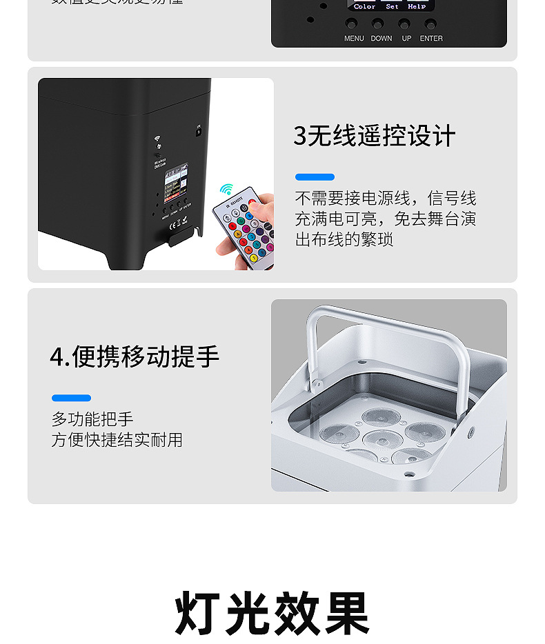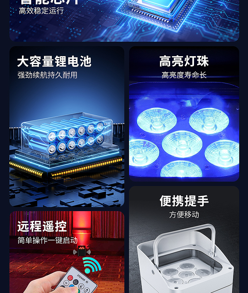 패튼 국경 무선 배터리 램프 휴대 전화 WiFi 원격 제어 6 18w 배터리 램프 충전 염색 램프스토어 가기