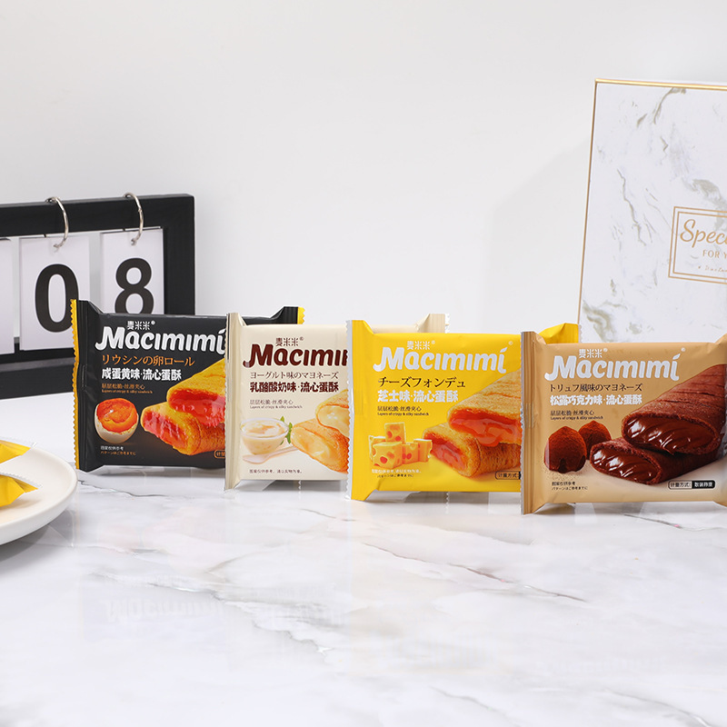 Maimi 흐르는 심장 계란 파삭 파삭 한 샌드위치 전체 상자 소금에 절인 계란 노른자 치즈 주입 하트 샌드위치 계란 롤 과자 간식스토어 가기