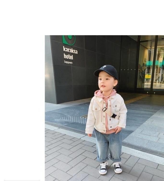 봄과 가을 여아 코트 재킷 아기의 서양 스타일 어린이의 성격 유행 브랜드 한국 스타일 유행 인터넷 연예인 데님 탑스토어 가기