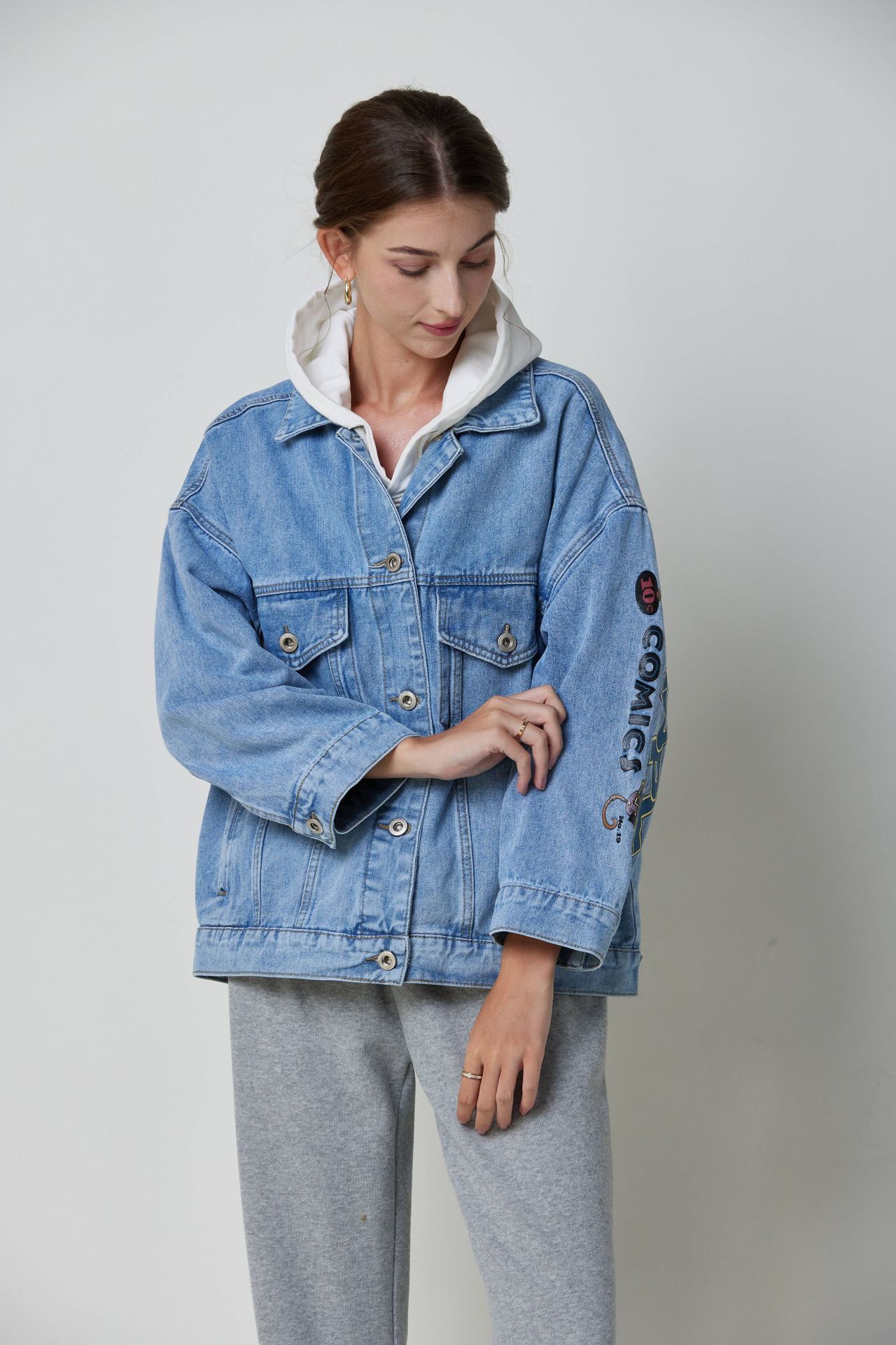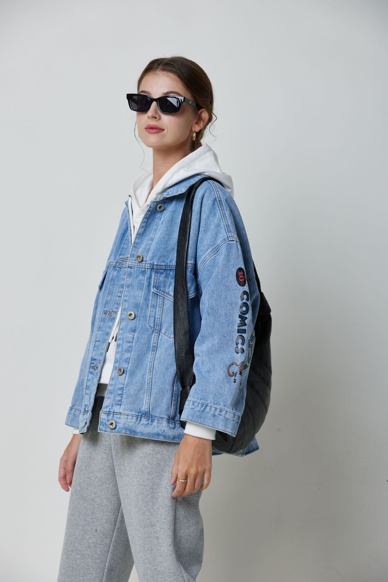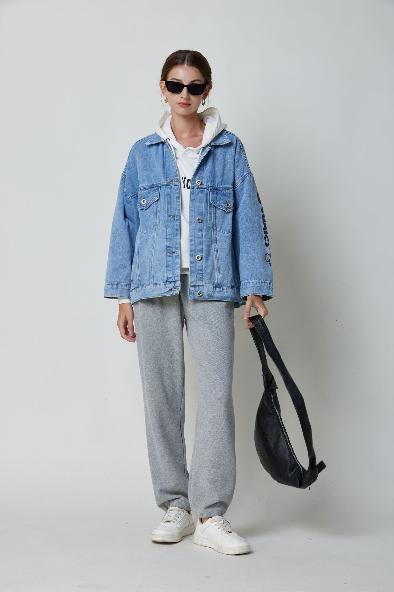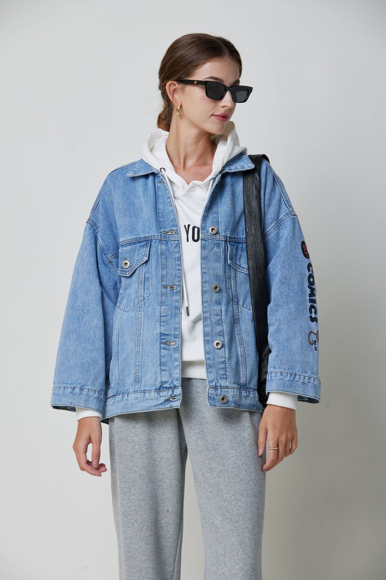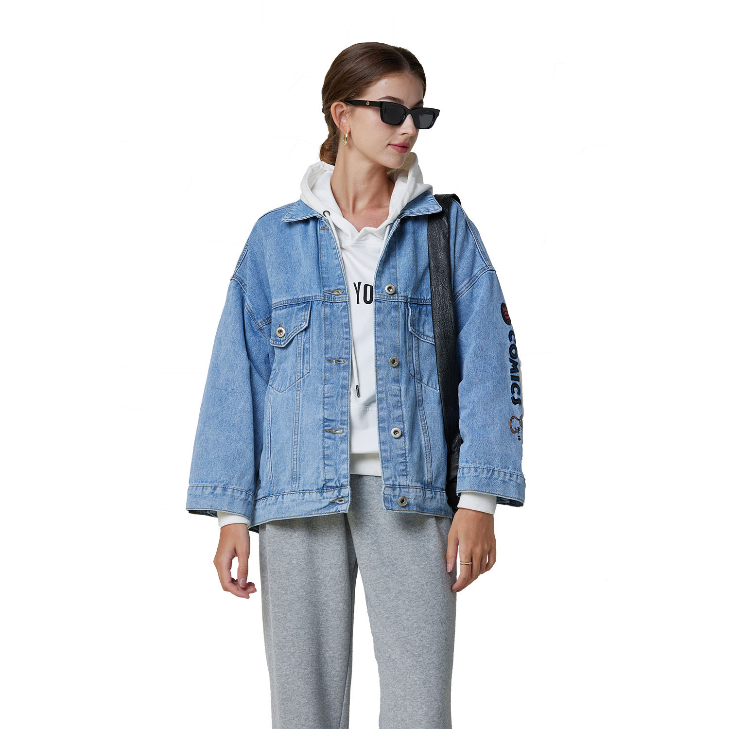 가준 대외 무역 여성용 데님 재킷, 개성 있는 프린트 여성용 긴팔 재킷, 가을 겨울 인기 상품, 제조업체스토어 가기