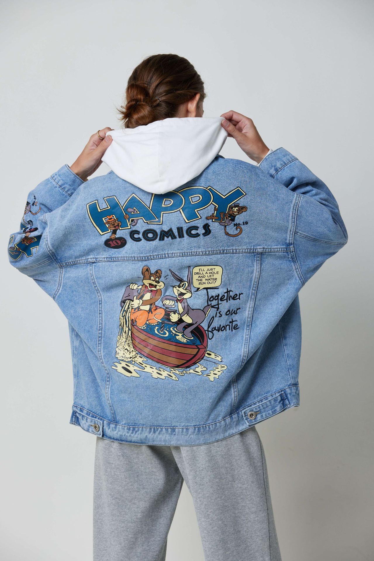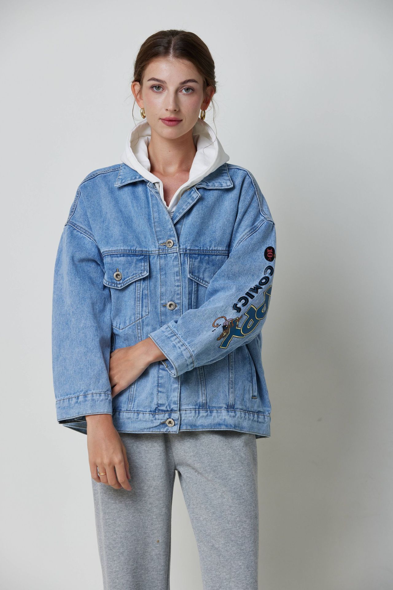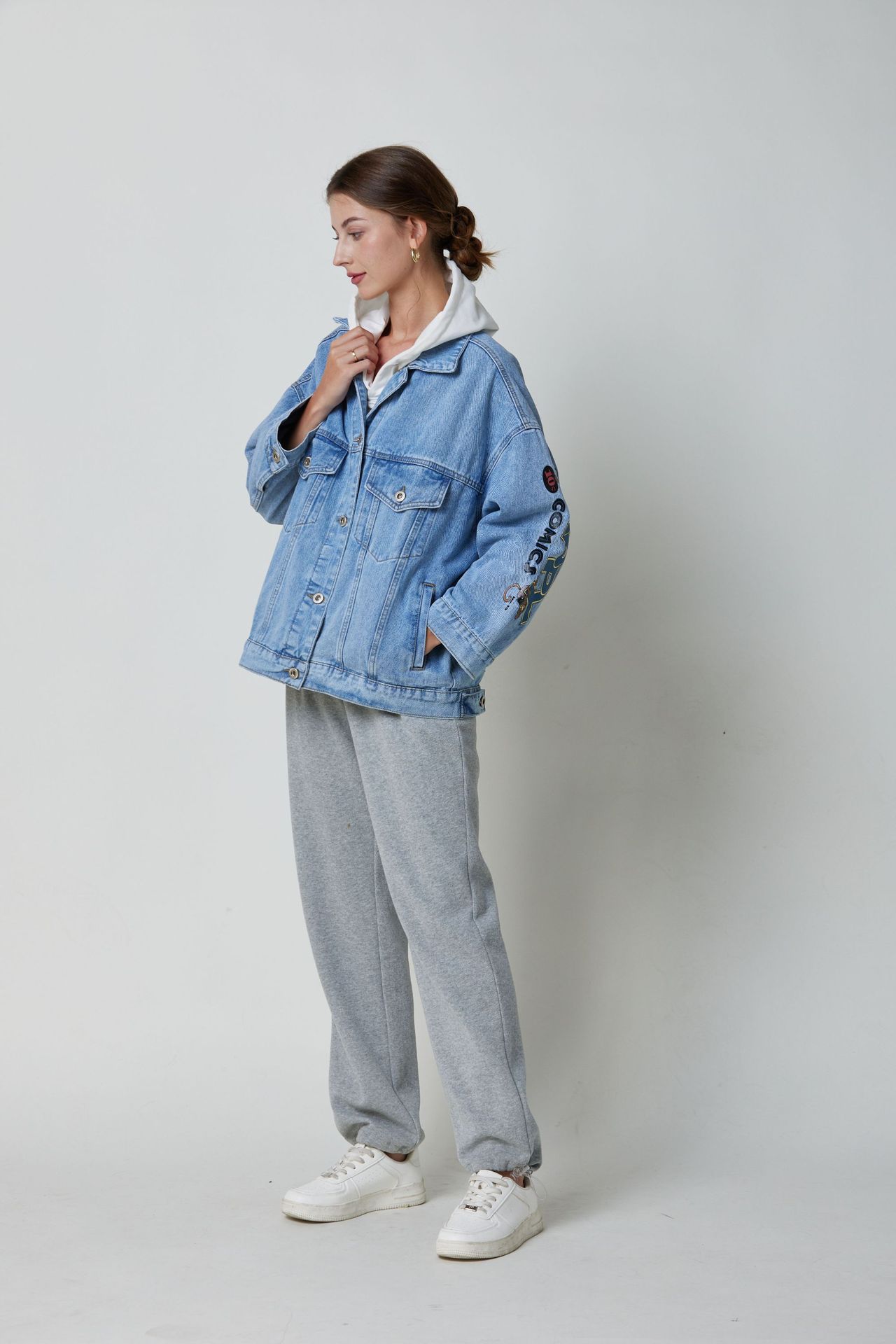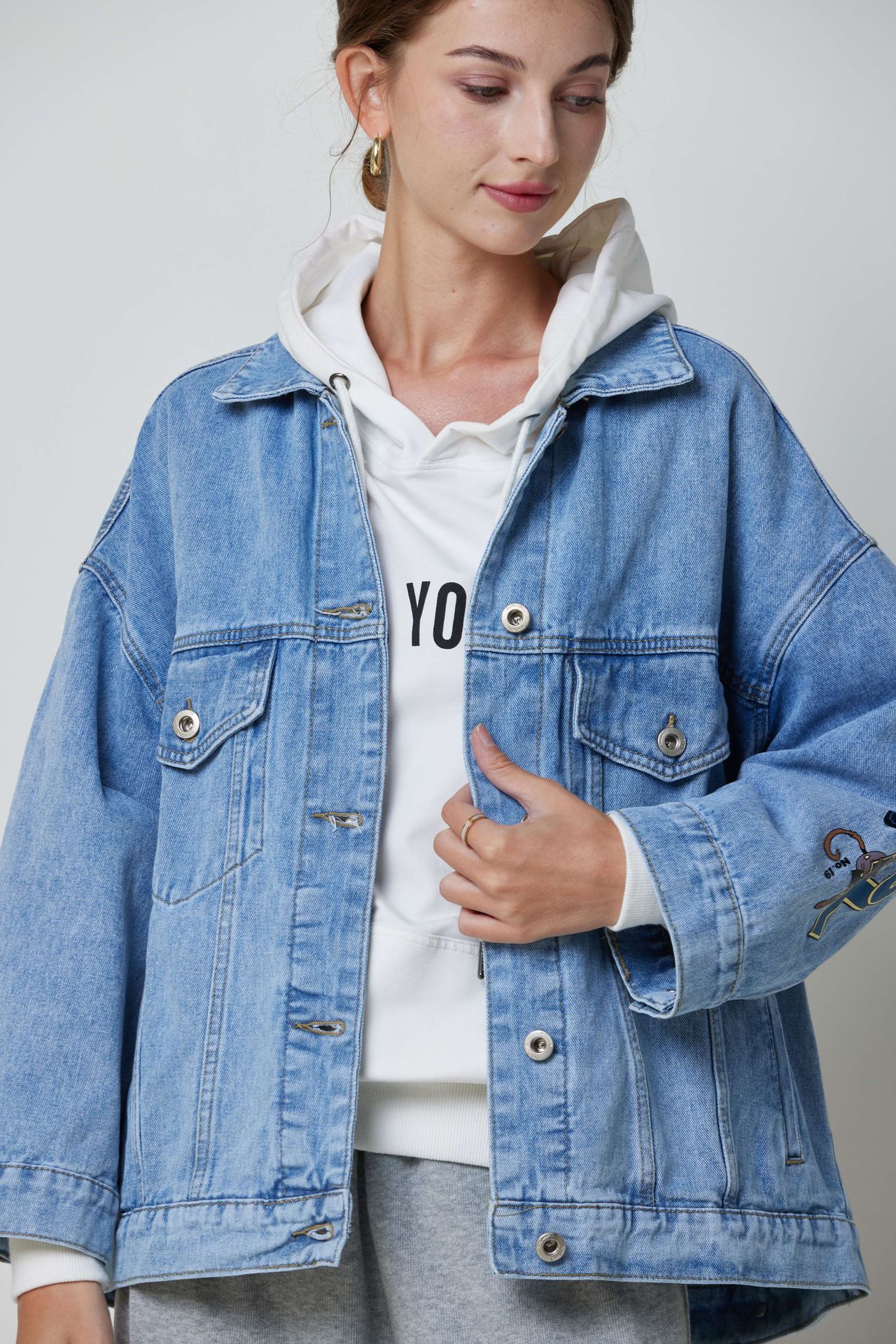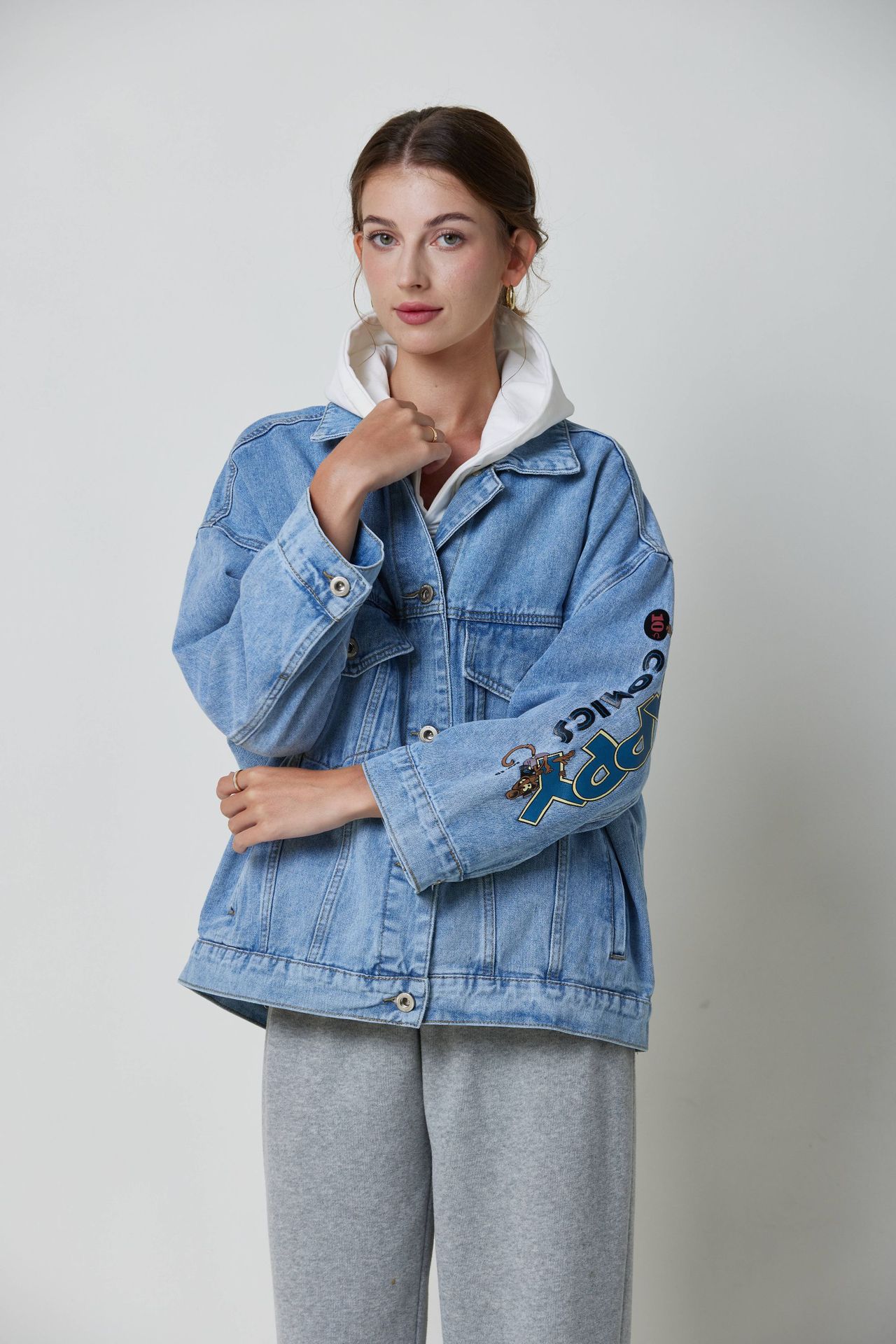 가준 대외 무역 여성용 데님 재킷, 개성 있는 프린트 여성용 긴팔 재킷, 가을 겨울 인기 상품, 제조업체스토어 가기