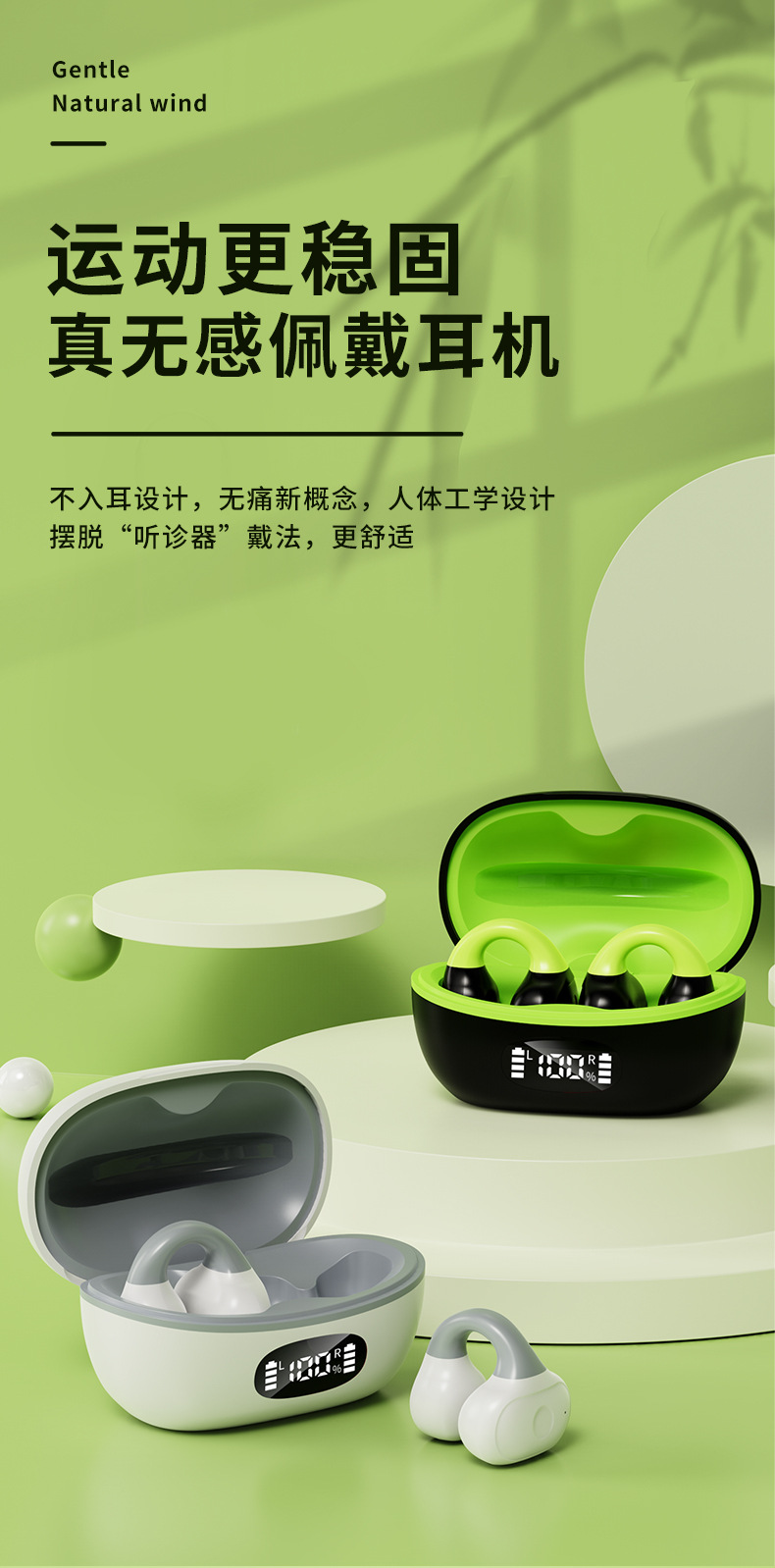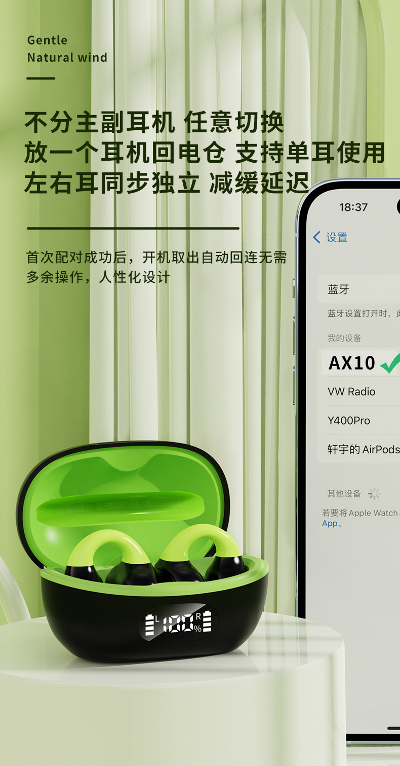 새로운 AX10 블루투스 헤드셋 클립 이어 타입 외부 사운드 귀에 아프지 않음 스테레오 디지털 디스플레이 이중 귀 충전 창고 비즈니스 스타일