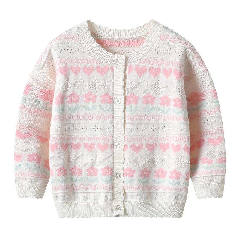 여아 니트웨어 순면 가디건 2025 봄 가을 신상 한국 스타일 어린 소녀 레이스 자켓 유아 아기 스웨터