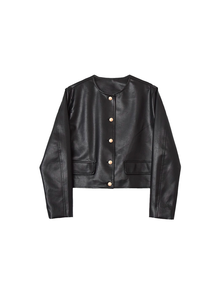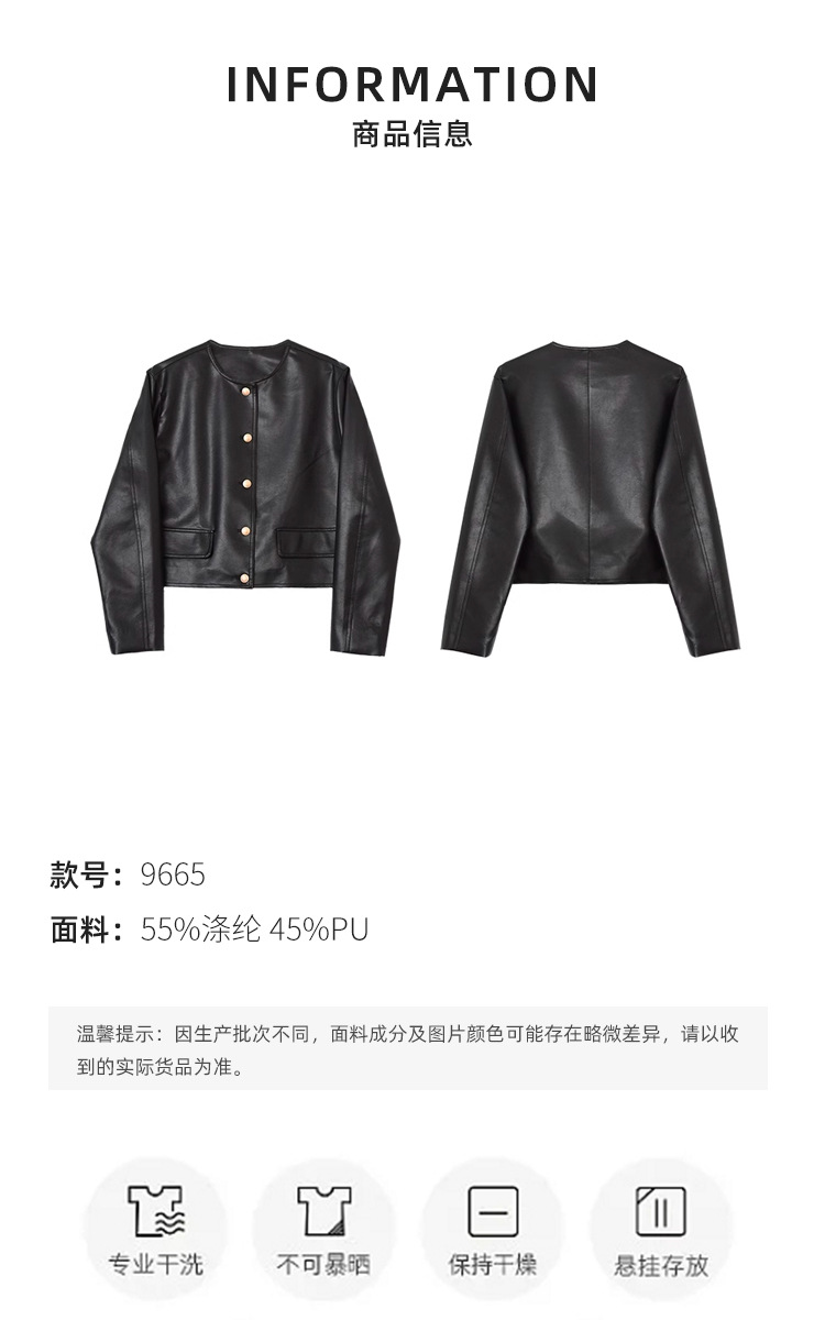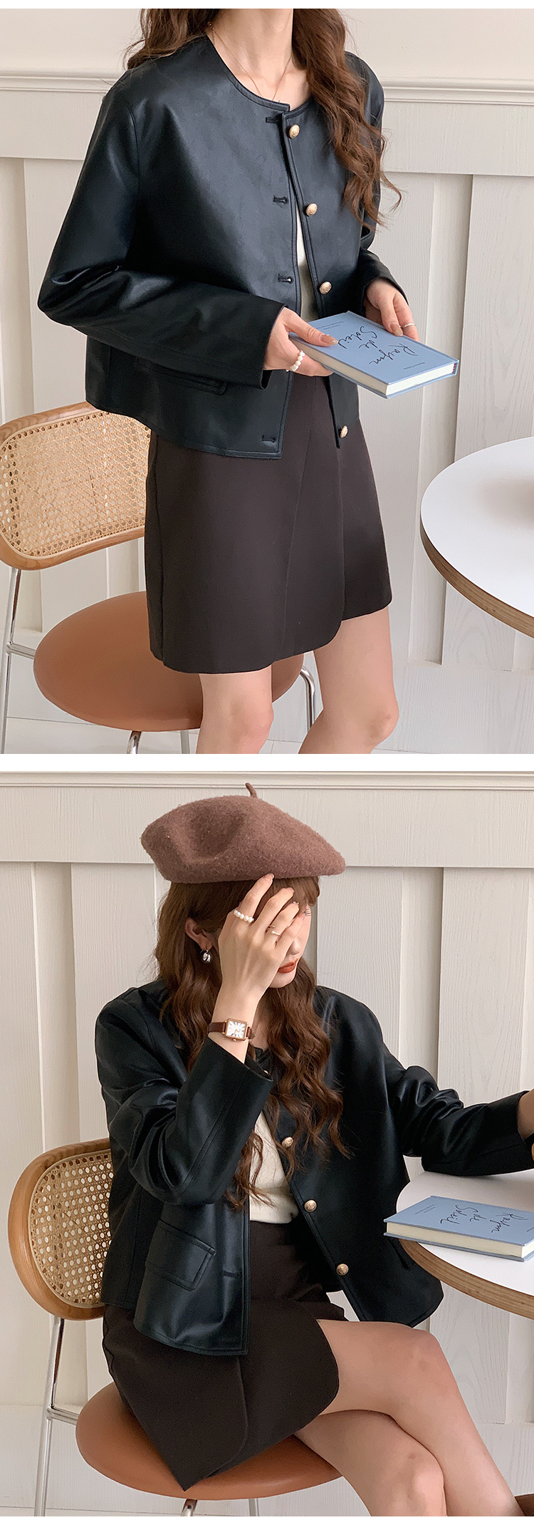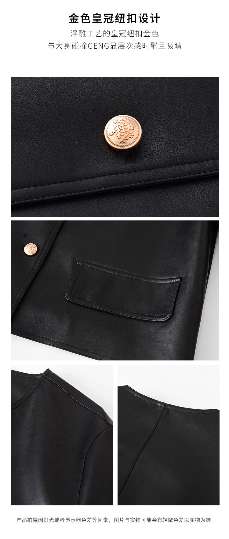 [벤 추] 유행 짧은 가죽 자켓 여자의 2023 이른 가을 새로운 한국 복고풍 라운드 넥 Pu 가죽 자켓