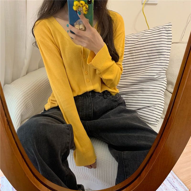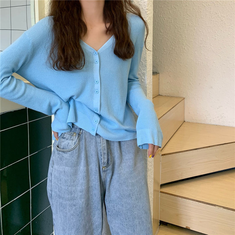가디건 얇은 V-넥 긴 소매 니트 스웨터 재킷 여자의 봄과 가을 2023 새로운 한국 스타일 인터넷 연예인 플러스 사이즈 베이스 셔츠 유행스토어 가기