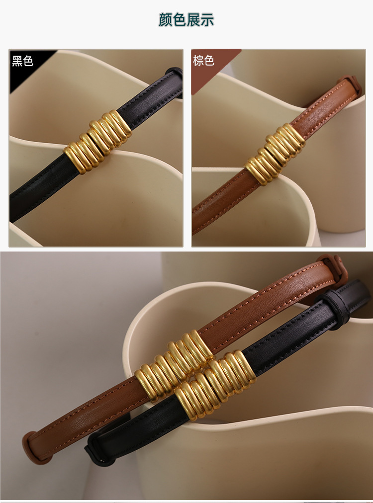 새로운 탄성 스트레치 애벌레 벨트 여성 상단 레이어 소가죽 좁은 버전 버클 가죽 벨트 여성 공장 재고스토어 가기