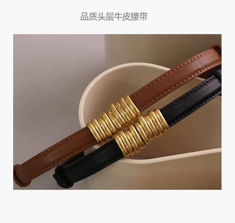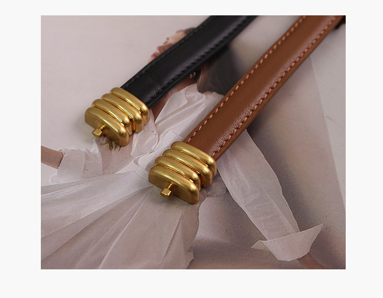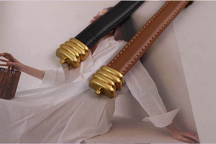 새로운 탄성 스트레치 애벌레 벨트 여성 상단 레이어 소가죽 좁은 버전 버클 가죽 벨트 여성 공장 재고